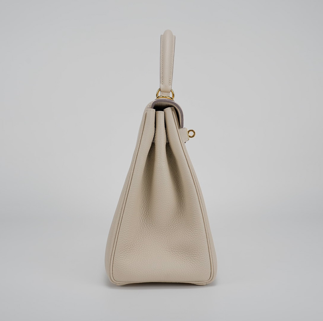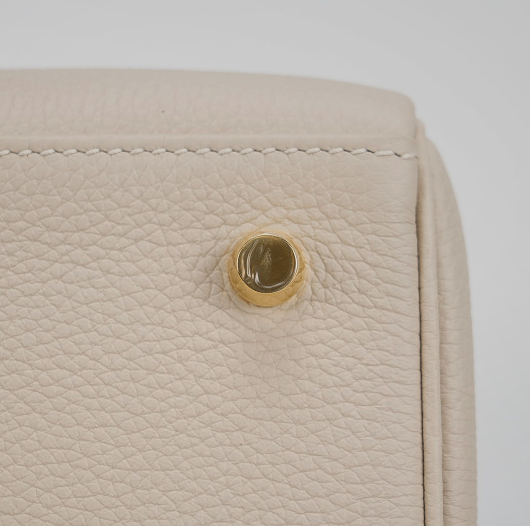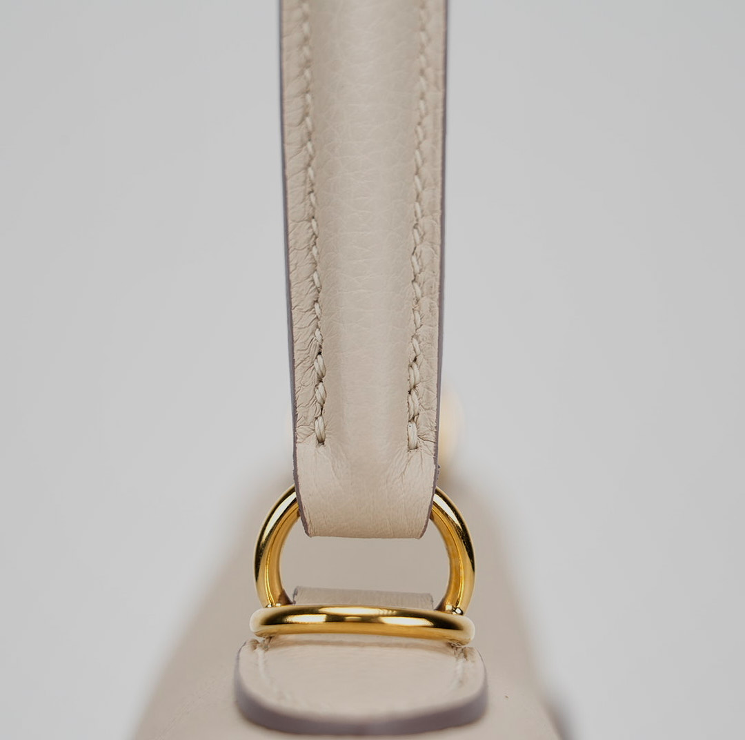 Enhance your casual and formal ensembles with this KY 25, meticulously handcrafted from Togo leather in Craie, an elegant, chalky white. Coordinate your jewelry with its gold-plated hardware, and use its detachable shoulder strap for a hands-free experience. For a relaxed vibe, leave the clasp open for easy access.