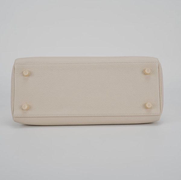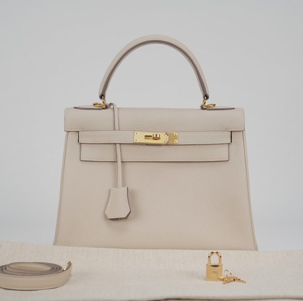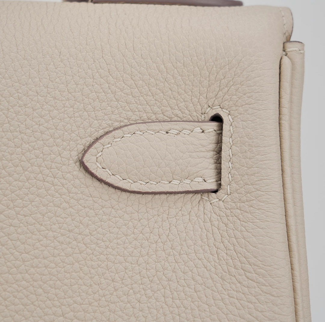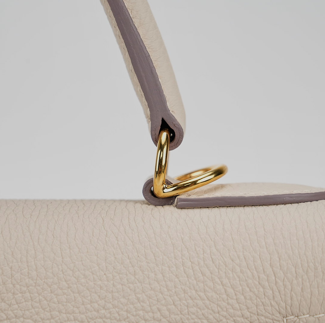 Enhance your casual and formal ensembles with this KY 25, meticulously handcrafted from Togo leather in Craie, an elegant, chalky white. Coordinate your jewelry with its gold-plated hardware, and use its detachable shoulder strap for a hands-free experience. For a relaxed vibe, leave the clasp open for easy access.