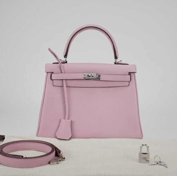This KY 25 was crafted from grained Togo leather in Mauve Sylvestre, a coveted pastel pink hue, topped with palladium hardware. Make it the highlight of your collection.