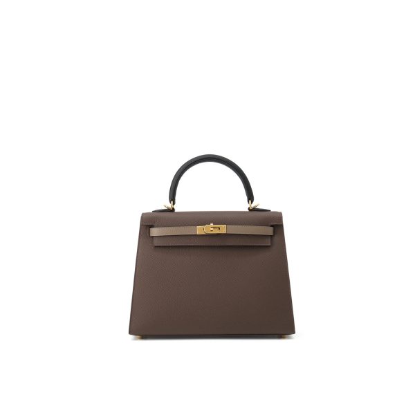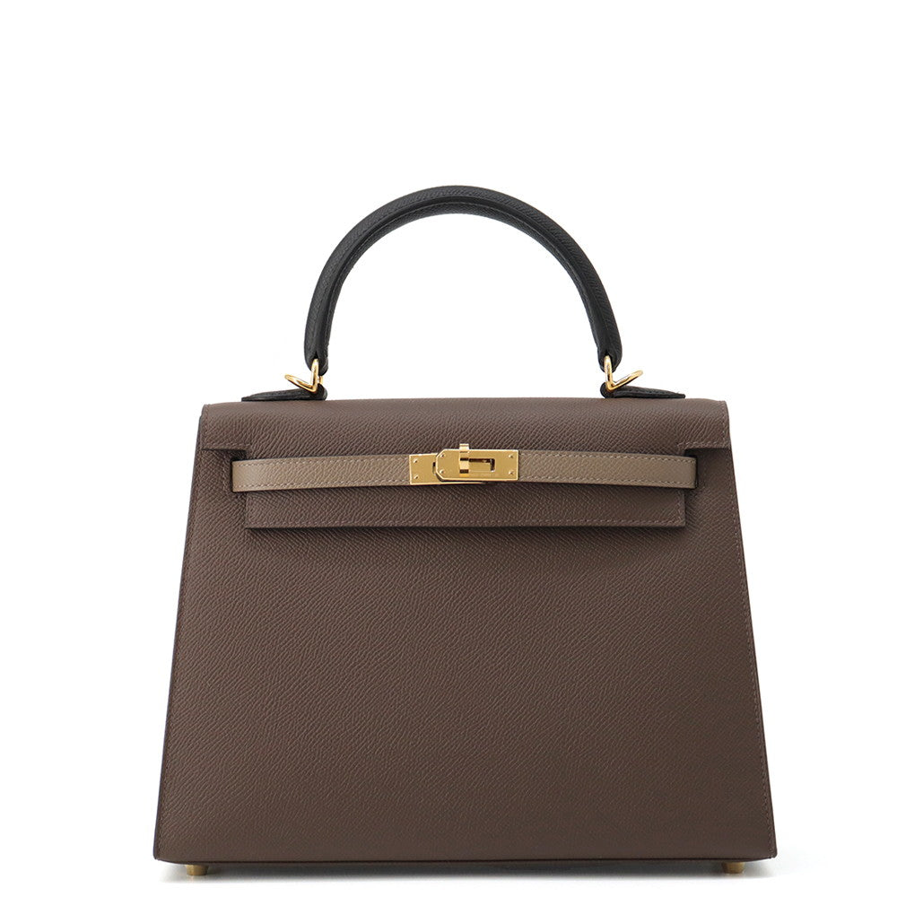 HomeShopKellyKY 25 Tricolor Ecorce/Black/Etoupe Epsom Sellier Gold