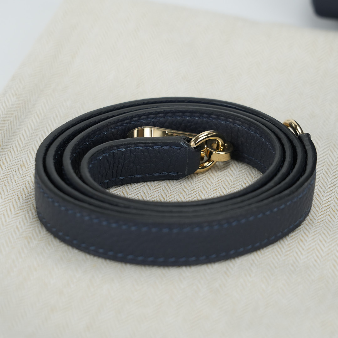 Meticulously handcrafted from Togo leather in Bleu Nuit. Coordinate your jewelry with its Permabrass-plated hardware, and use its detachable shoulder strap for a hands-free experience. For a relaxed vibe, leave the clasp open for easy access.