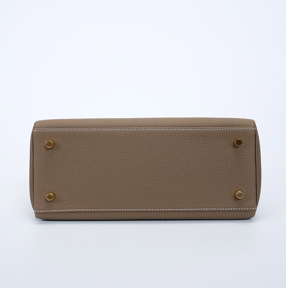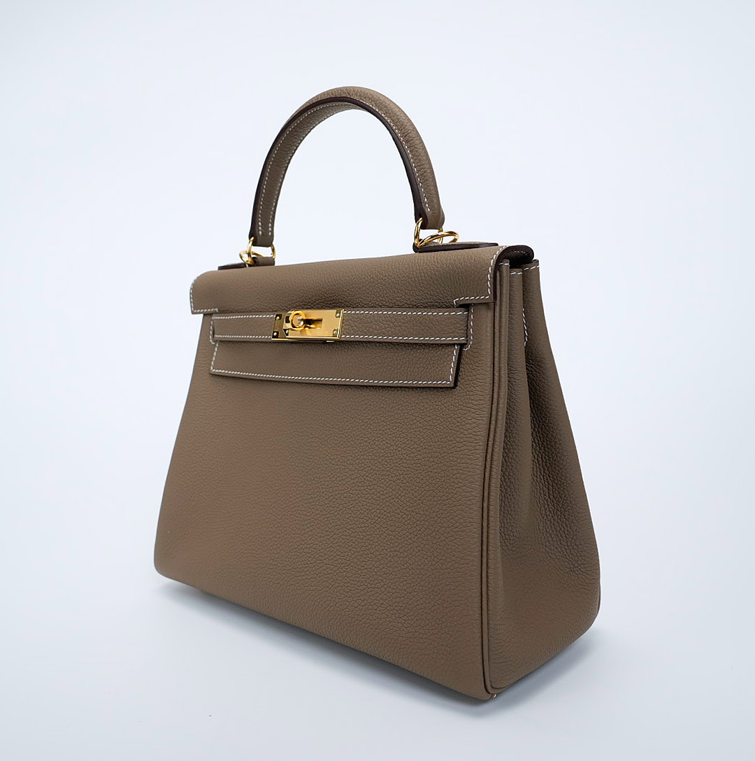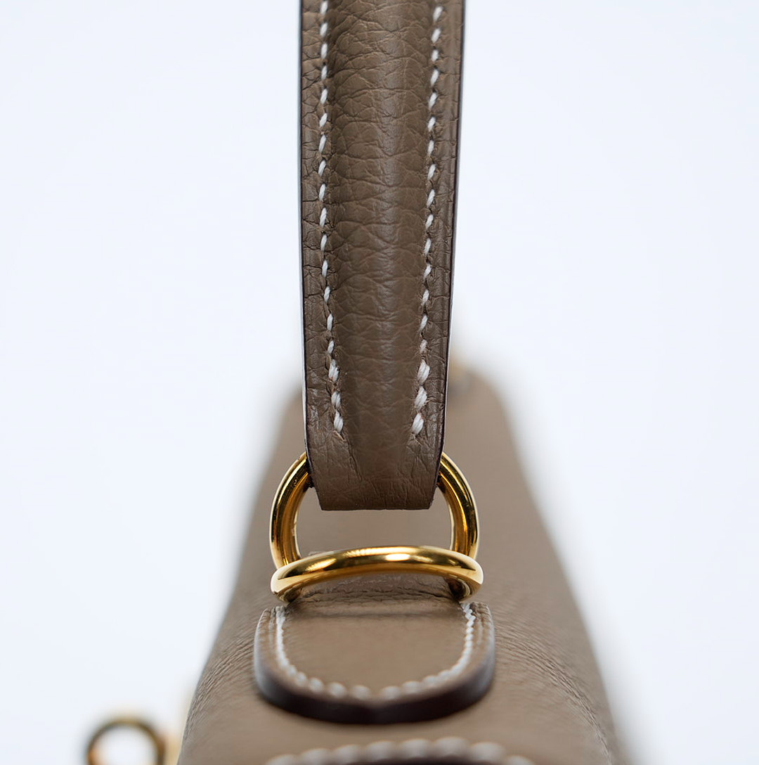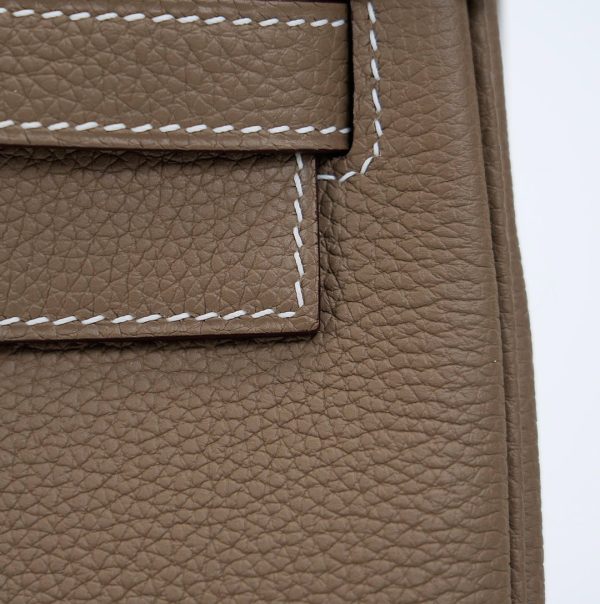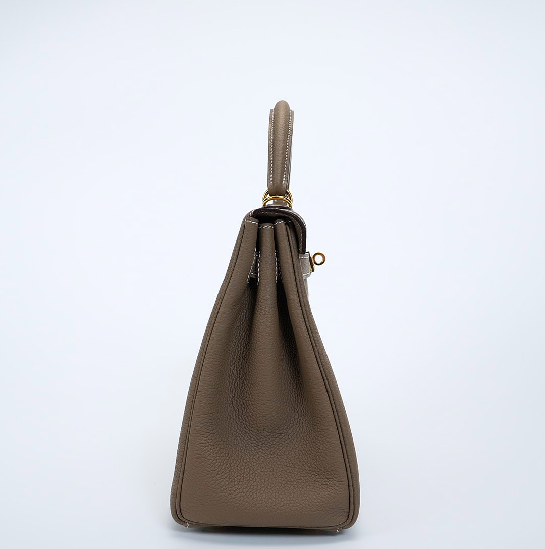 The KY 28 is your perfect companion from office hours to evening outings. Expertly handcrafted from soft-grained Togo leather in the elegant Étoupe shade, it features gold-plated hardware for a touch of sophistication. Leave the clasp open for relaxed style and easy access.