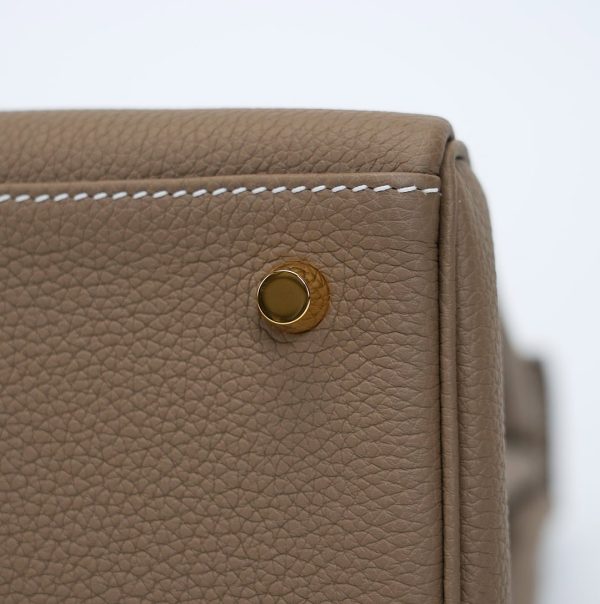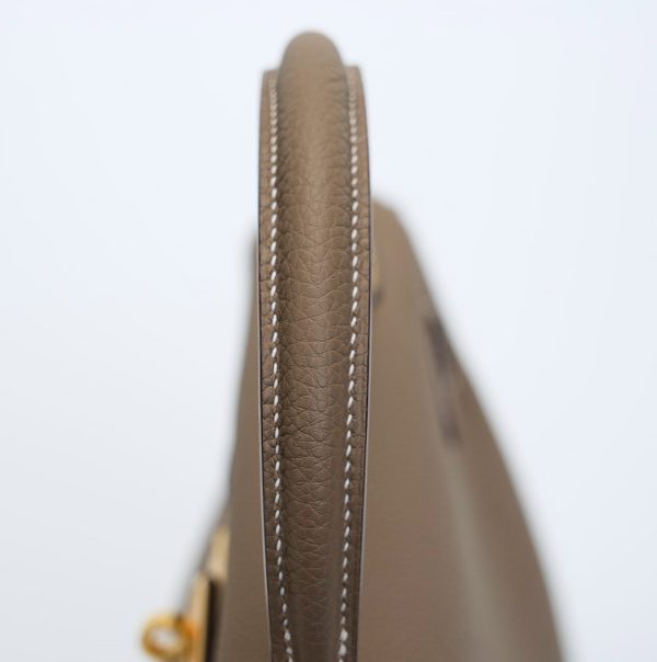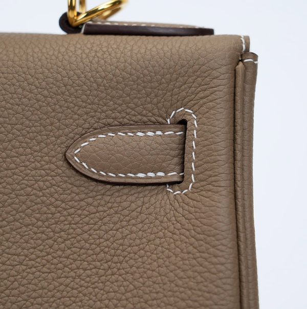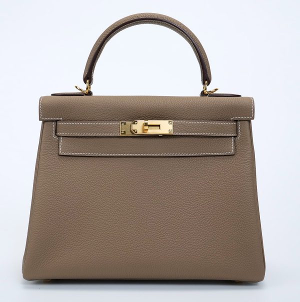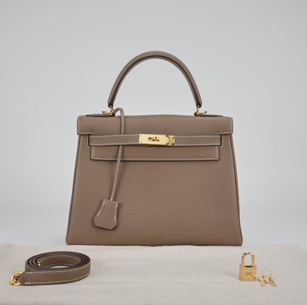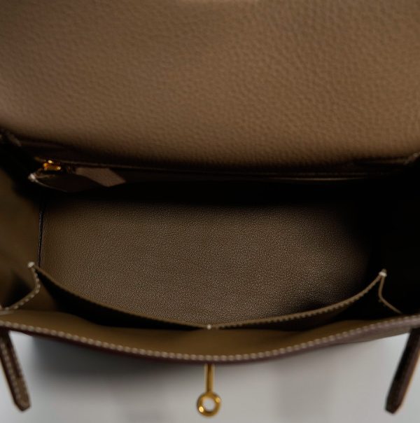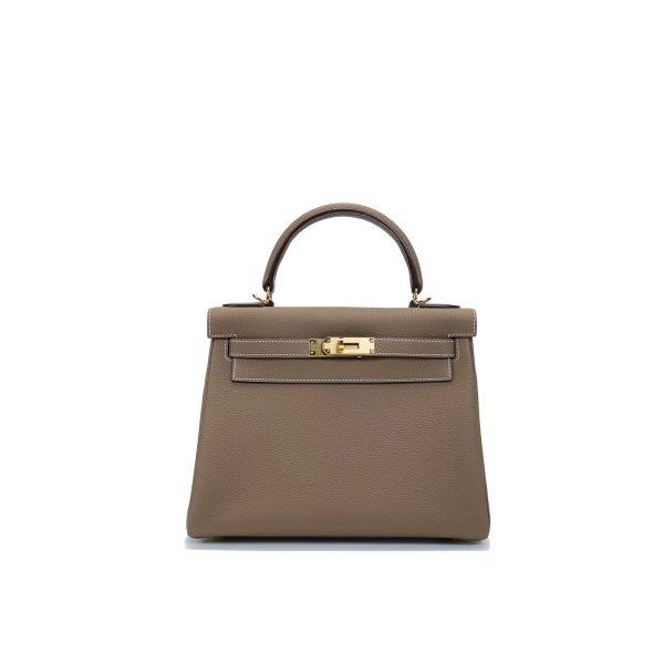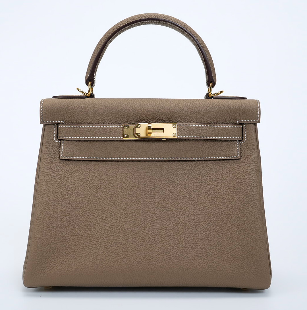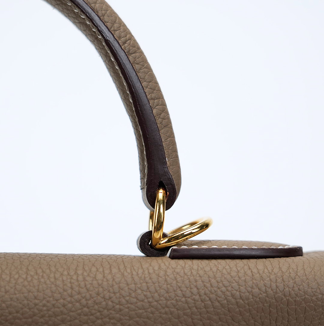 The KY 28 is your perfect companion from office hours to evening outings. Expertly handcrafted from soft-grained Togo leather in the elegant Étoupe shade, it features gold-plated hardware for a touch of sophistication. Leave the clasp open for relaxed style and easy access.