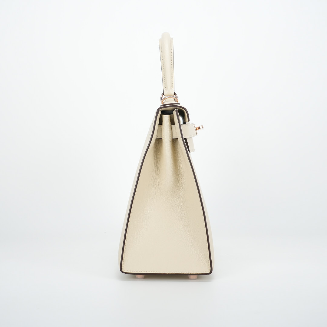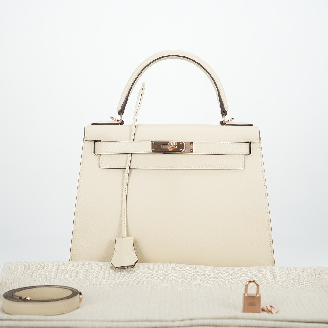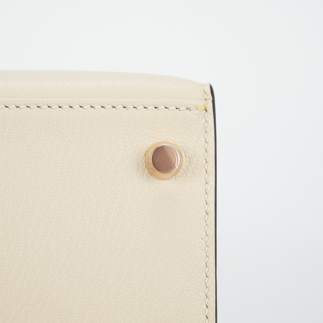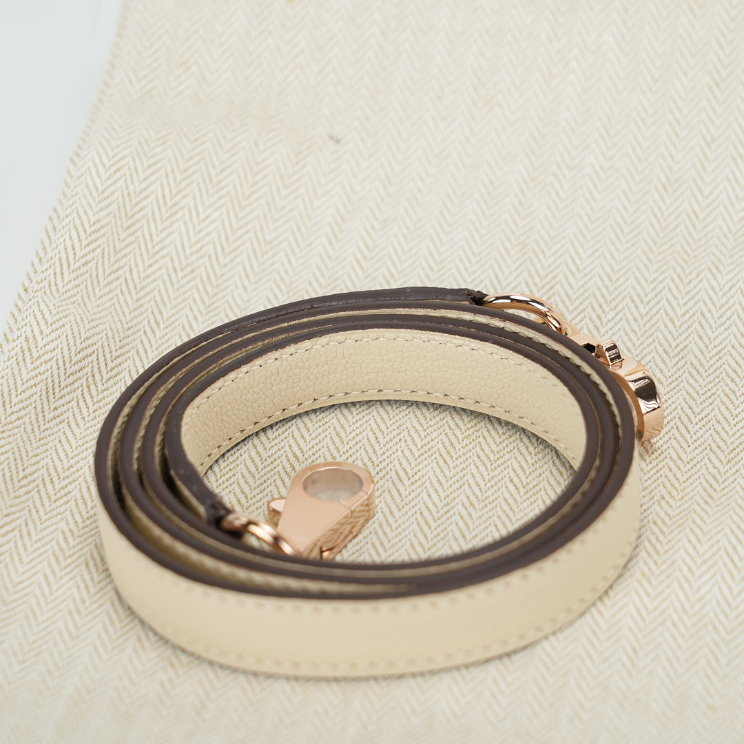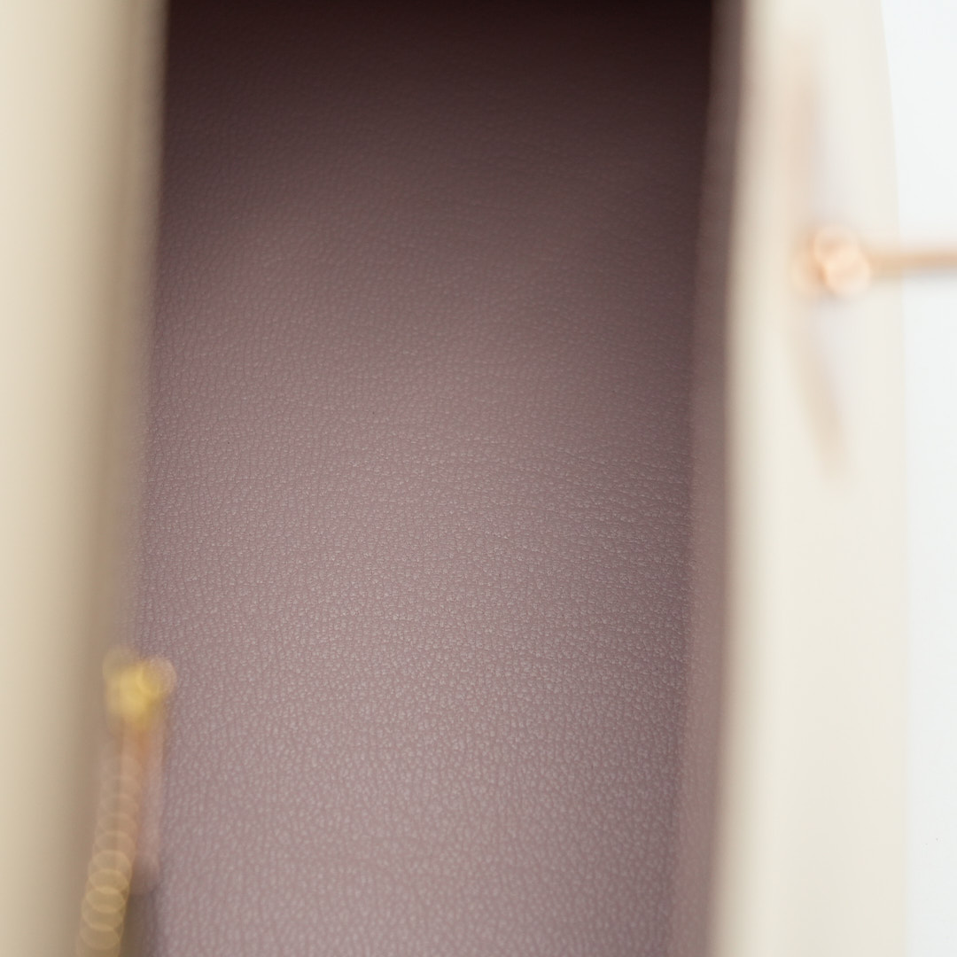 This Special KY Sellier style is in Nata and inside Mauve Pale Chevre Chevre Mysore leather with Rose Gold hardware and has a mixture of contrast and tonal stitching, two straps with front toggle closure, clochette, with lock and two keys, single rolled handle and removable shoulder strap.