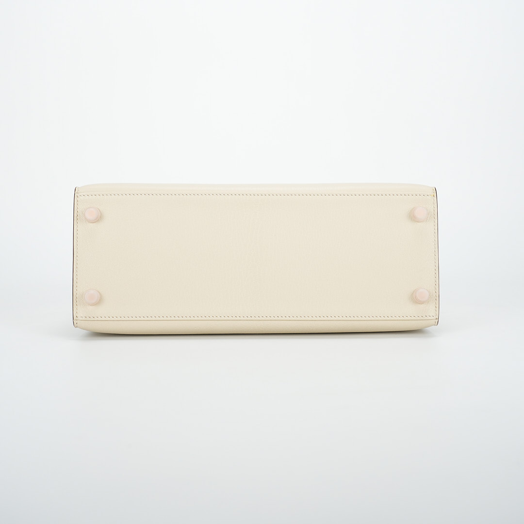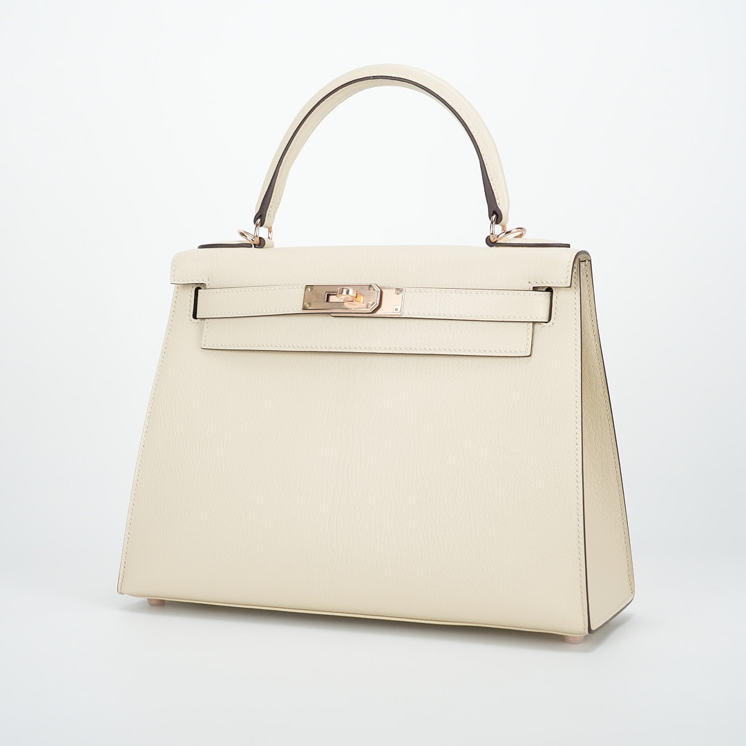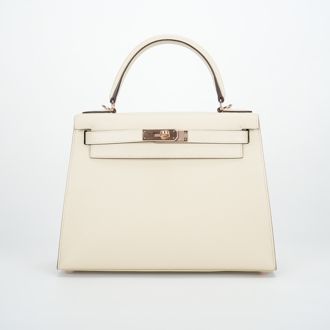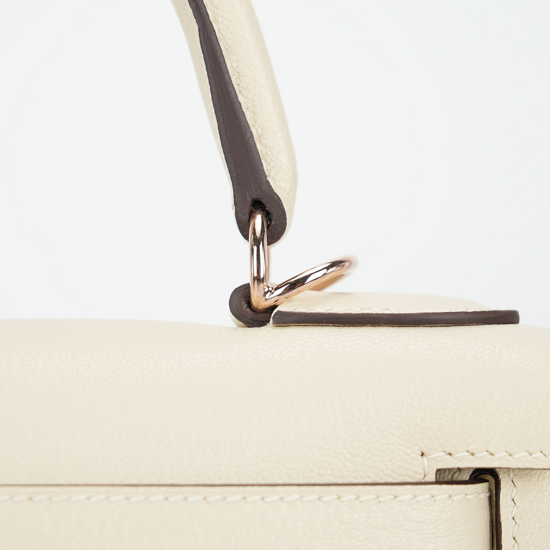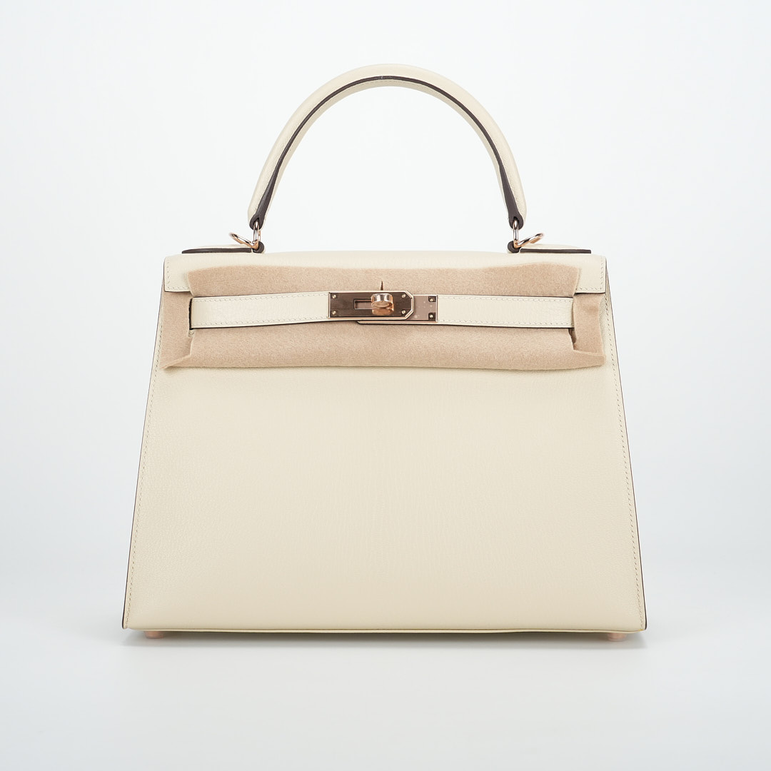 This Special KY Sellier style is in Nata and inside Mauve Pale Chevre Chevre Mysore leather with Rose Gold hardware and has a mixture of contrast and tonal stitching, two straps with front toggle closure, clochette, with lock and two keys, single rolled handle and removable shoulder strap.