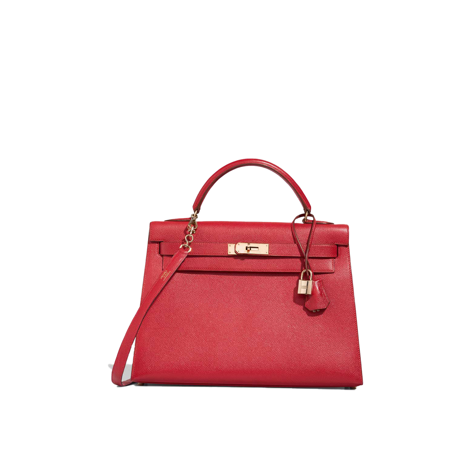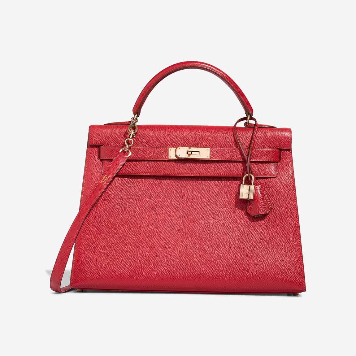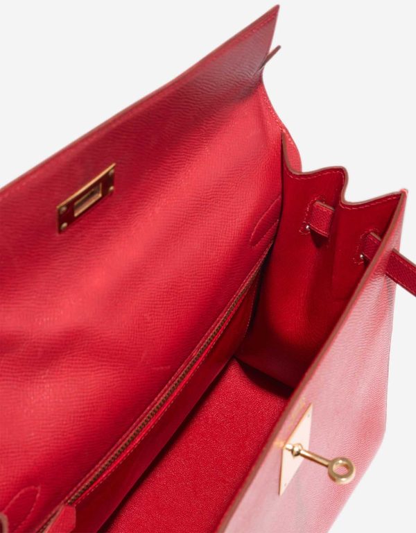 With its bold hue and iconic silhouette, this KY 32 in Rouge Casaque Epsom leather is a standout classic. The structured design, accented with gold-plated hardware, makes it a sophisticated choice for any occasion from office meetings to evening events.