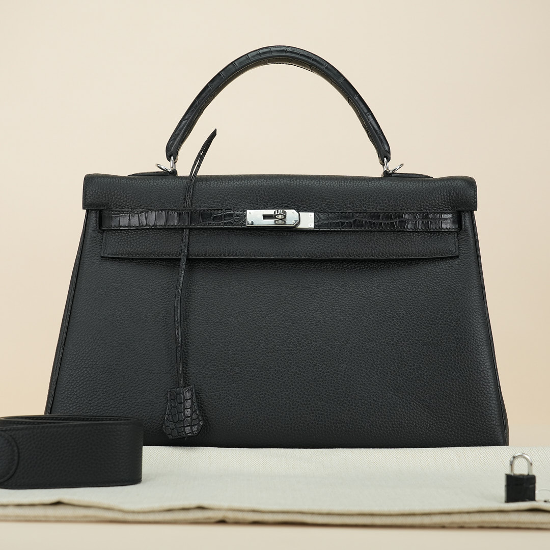 This KY 40 is handcrafted from Clemence leather in Black with Niloticus Crocodile and is a spacious companion for any occasion. The inside of the bag offers enough space for all your essentials, including a laptop.