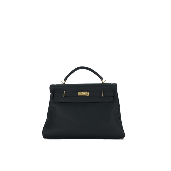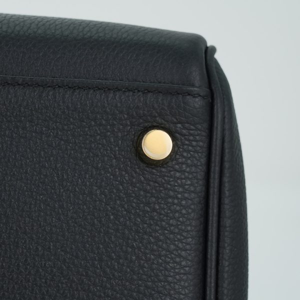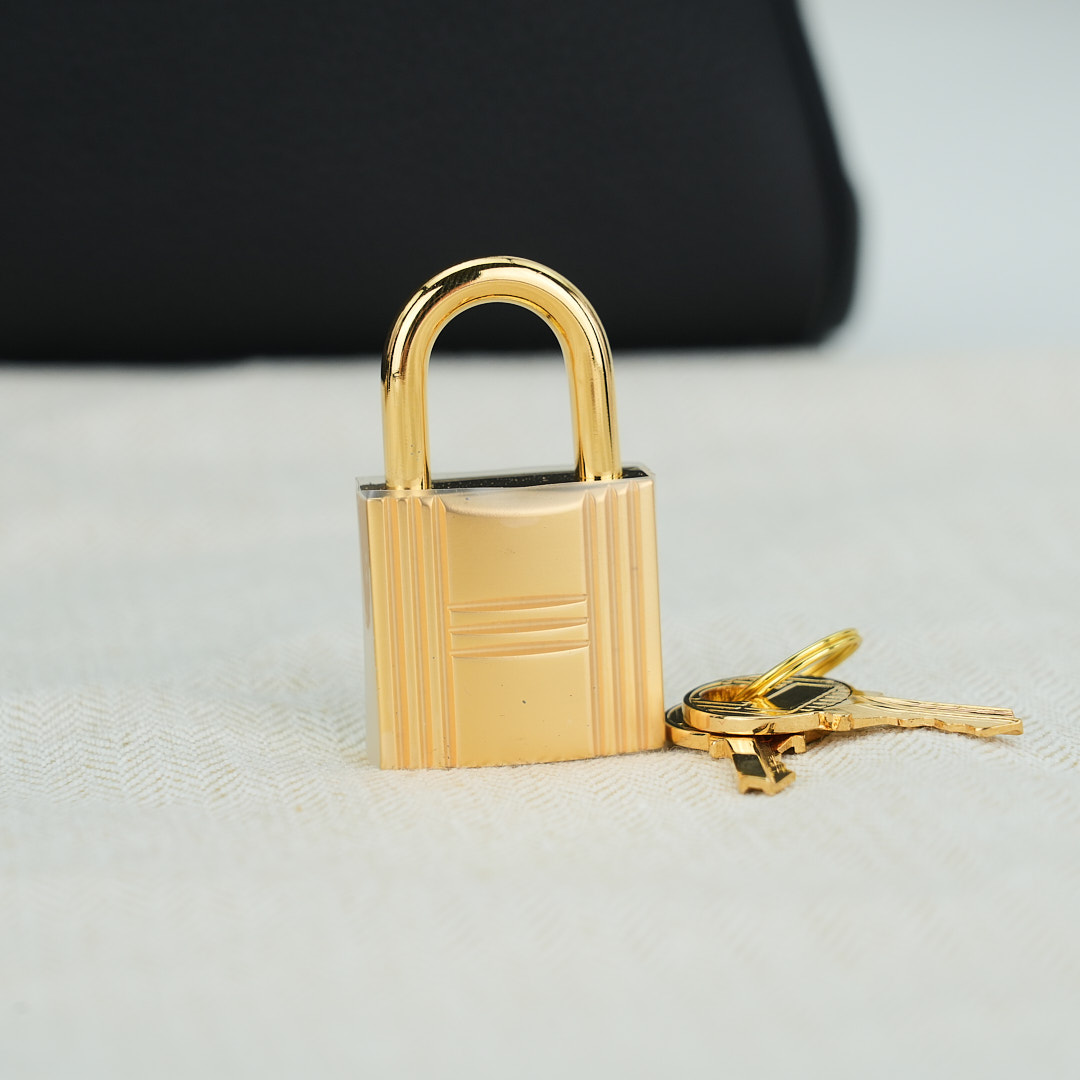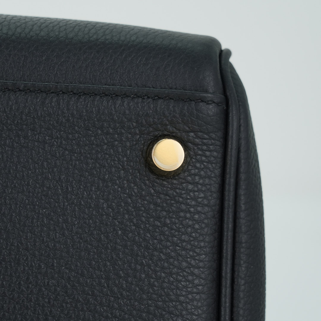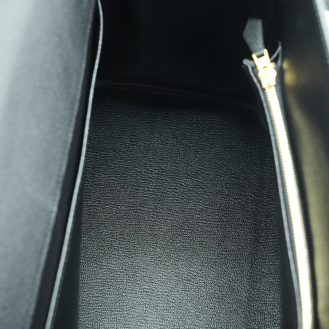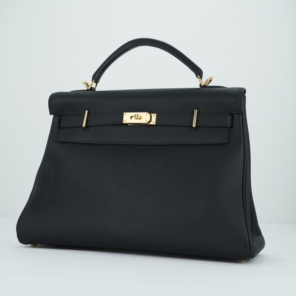 This KY 42 Maxi, in the Retourne style, is of Black Togo leather with palladium hardware and features same tonal stitching, front flap, front toggle closure, clochette with lock and two keys, a single rolled handle and a detachable canvas shoulder strap.