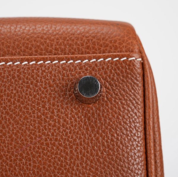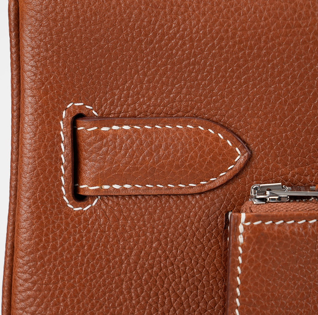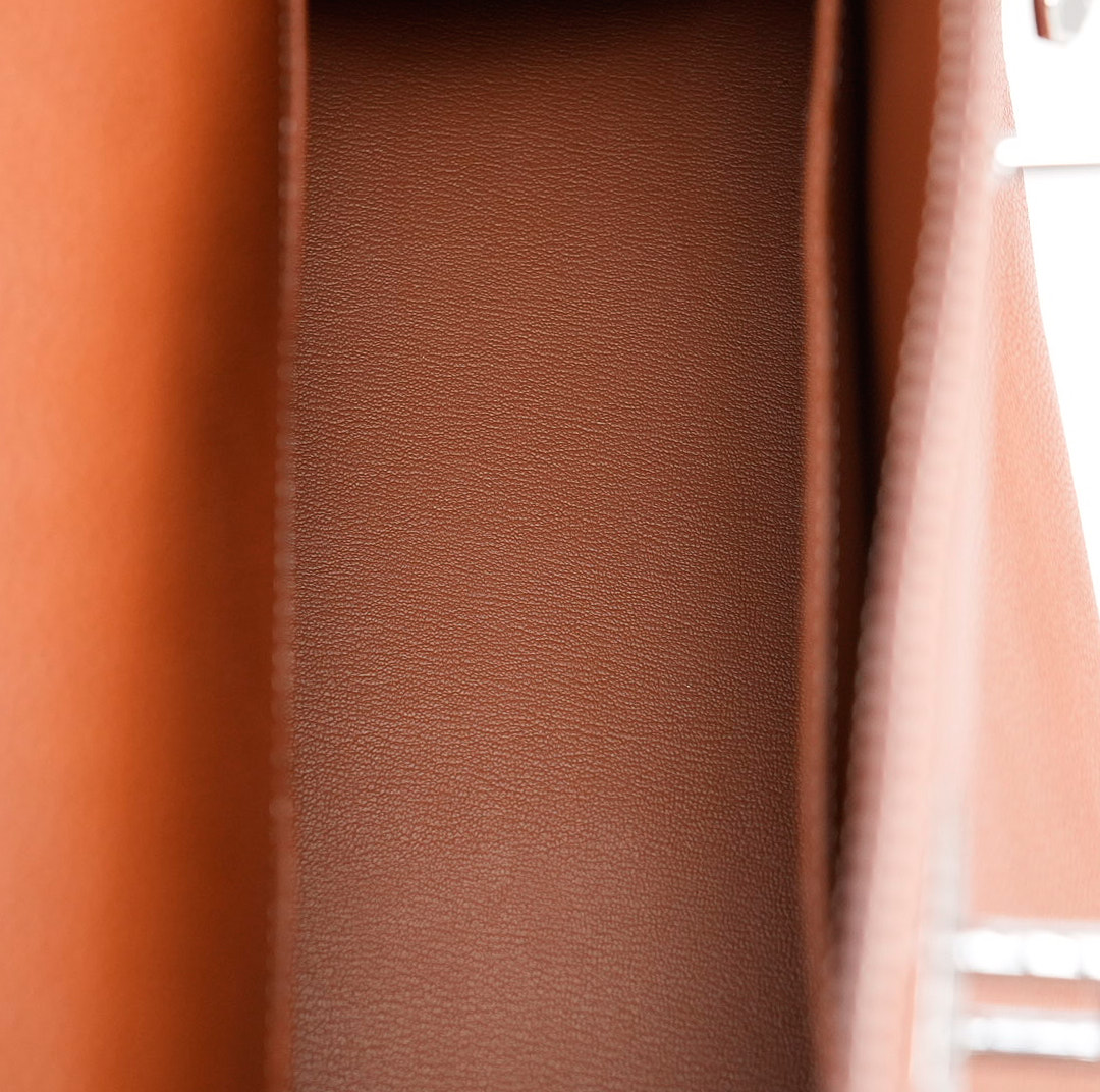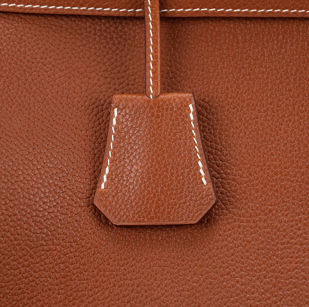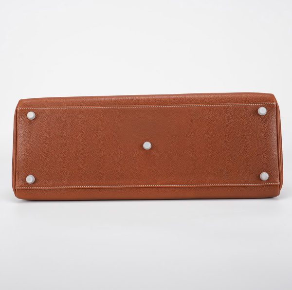 This KY 42 Maxi, in the Retourne style, is of Fauve Barenia Faubourg leather with Palladium hardware and features contrast stitching, front flap with two straps, front toggle closure, clochette with lock and two keys, a single rolled handle and a detachable canvas Fauve shoulder strap.