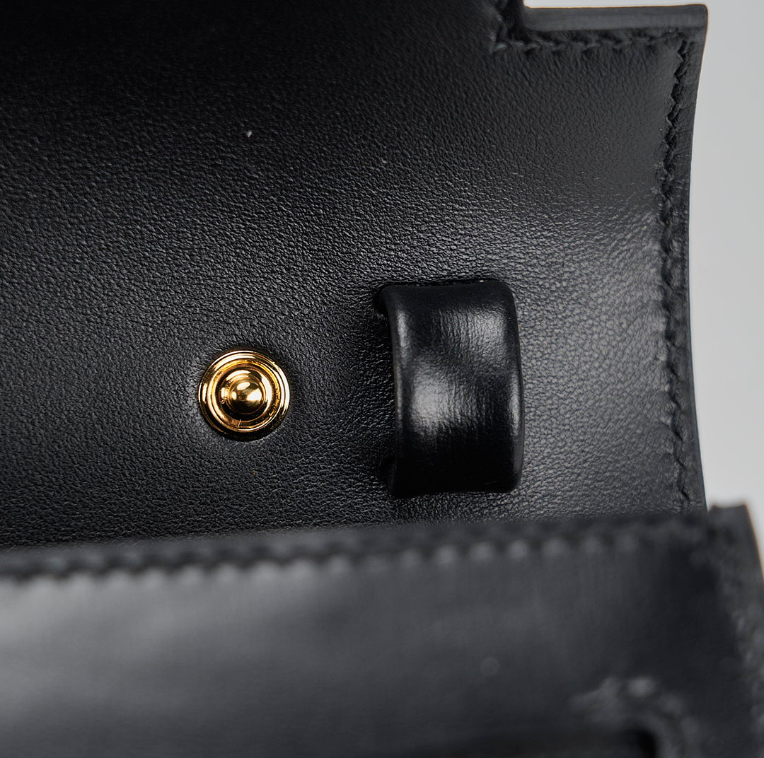 The KY Elan is an elegant addition to your style. Handcrafted from Box leather, it is colored in Black and is detailed with gold-plated hardware.