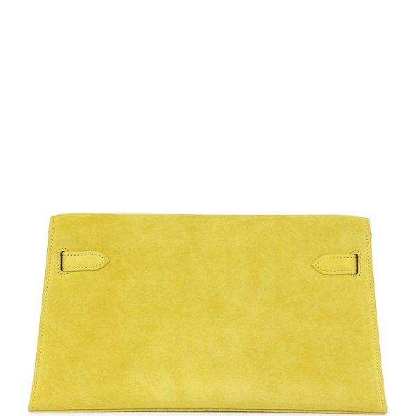 This KY Elan is in Jaune De Naples doblis leather with palladium hardware, two pull straps that attach to a toggle, and an interior that has snaps for shoulder strap, and a removable shoulder strap.