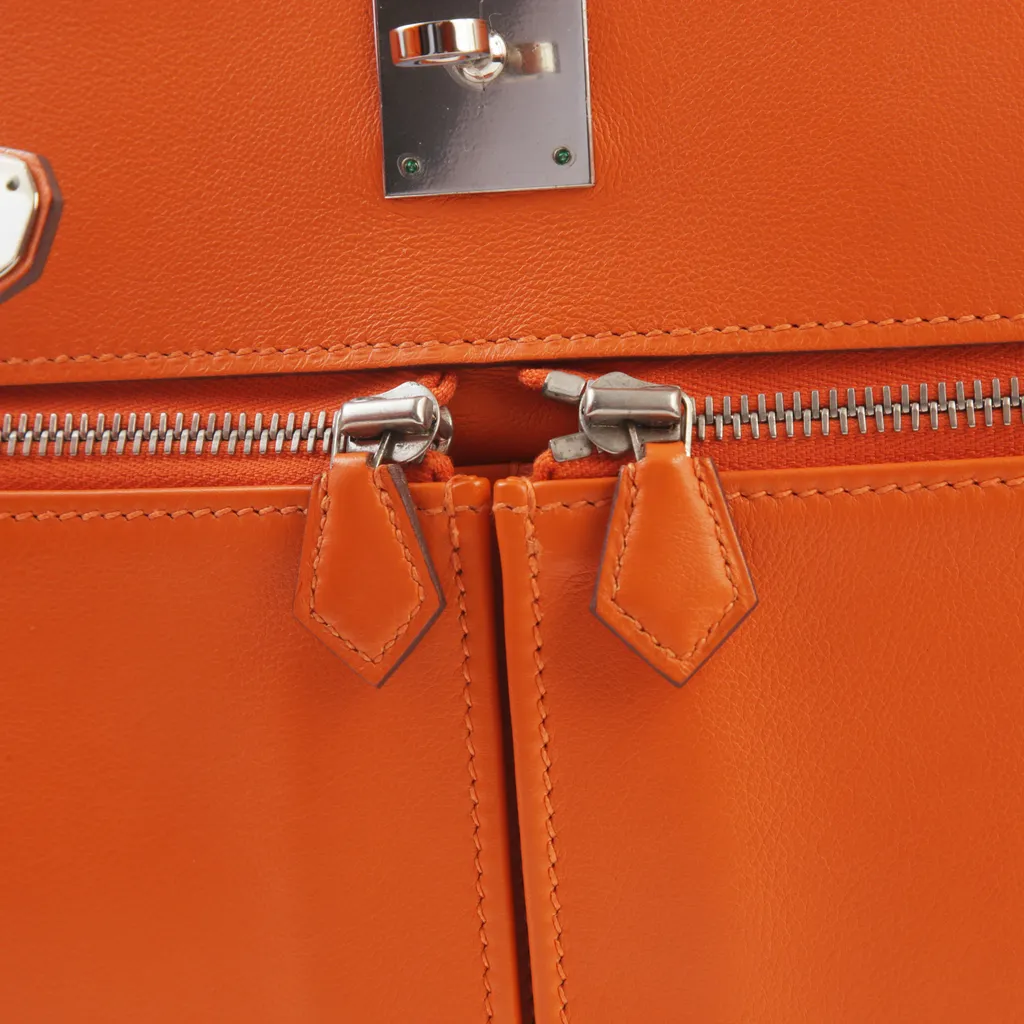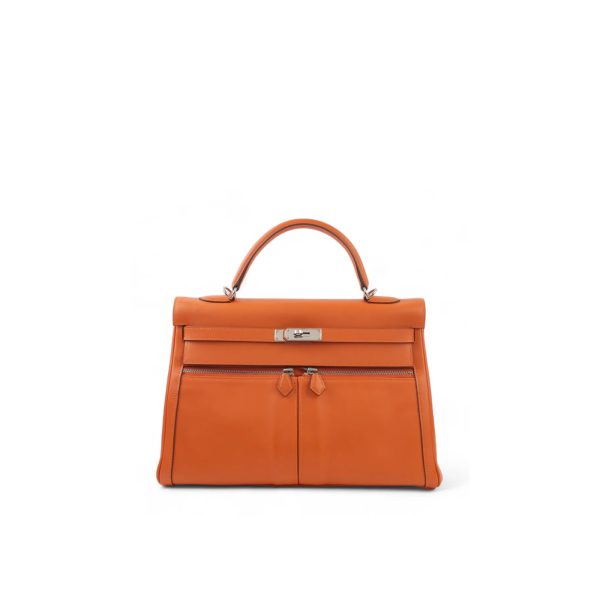This KY Lakis adds a sporty twist to the Kelly bag’s ladylike elegance. It was handcrafted from ultra-smooth Swift leather in Jaune Ambre, a rich yellow shade, and decorated with palladium hardware. The zippered pockets are ideal to keep your phone, keys and AirPods at hand.