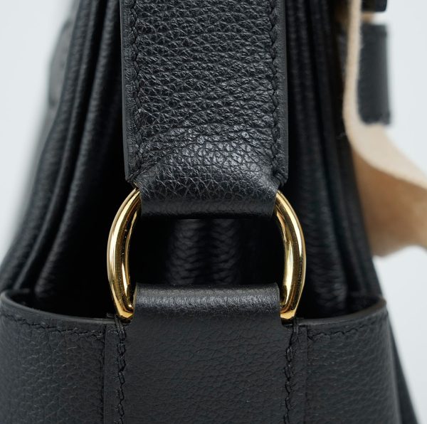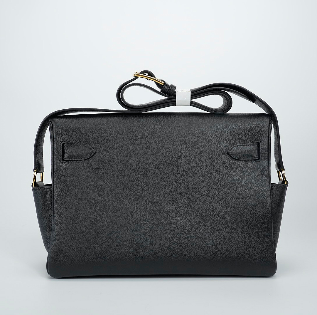 This is a Evergrain KY Messenger in Black. This stylish shoulder bag is crafted of Evergrain leather in black. The bag features a crossbody strap with gold hardware and a broad front flap that closes with a matching turn lock. The flap opens to a leather interior with zipper and patch pockets.