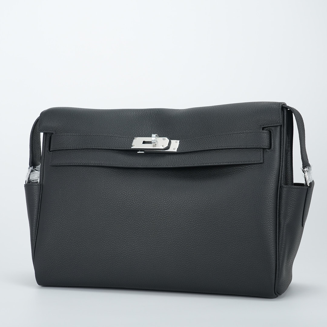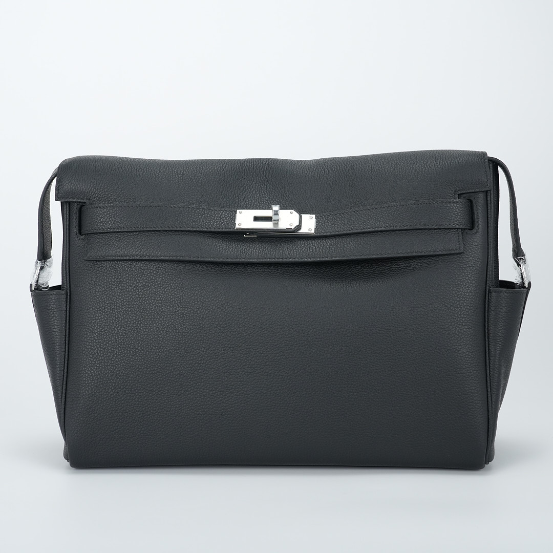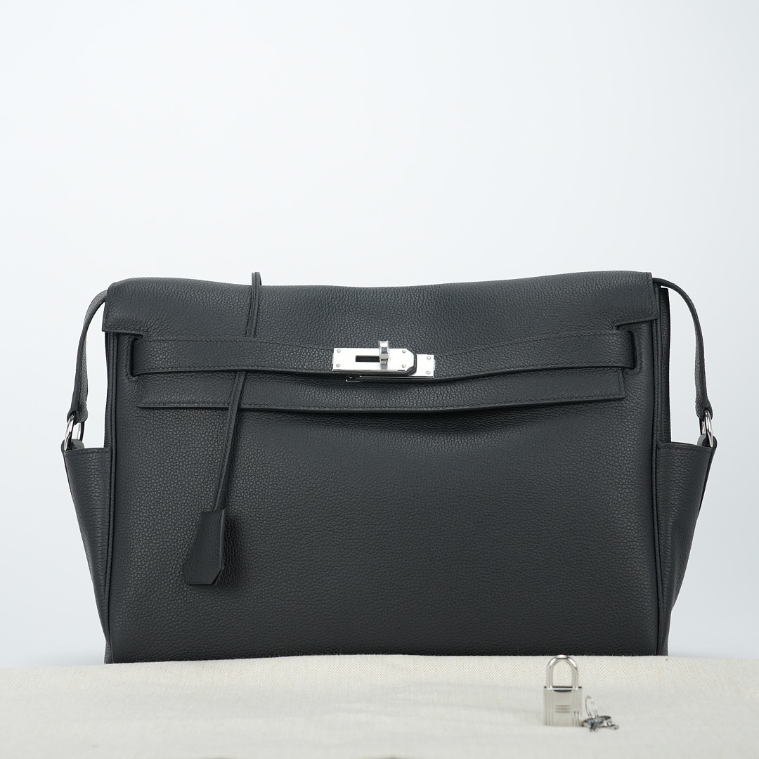 KY Messenger GM 32 model bag featured in black shade. Versatile, chic and sporty, it can be worn on the shoulder, crossbody on the front or the back of the body. So stylish in black togo leather and Palladium hardware with the adjustable strap.