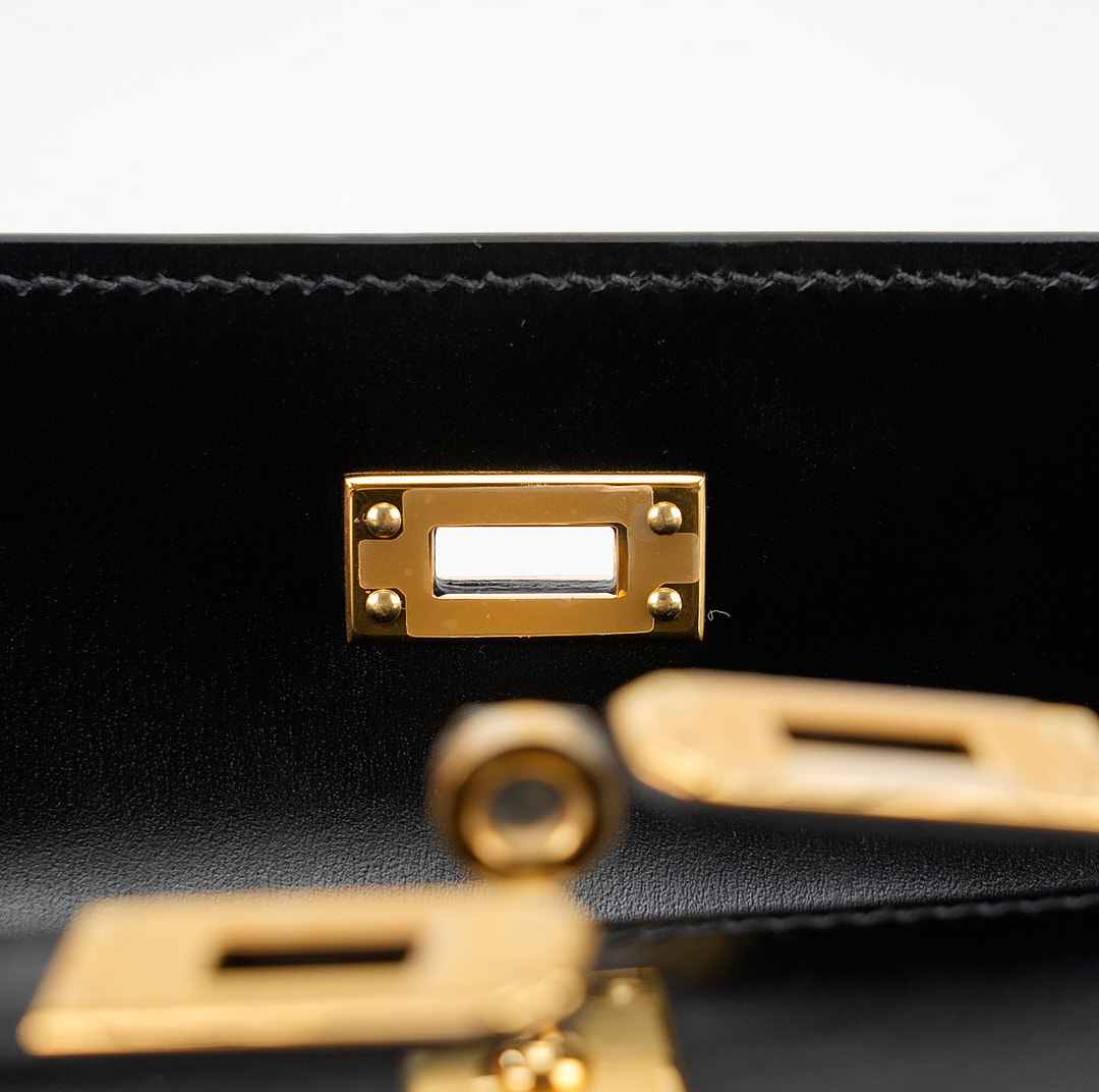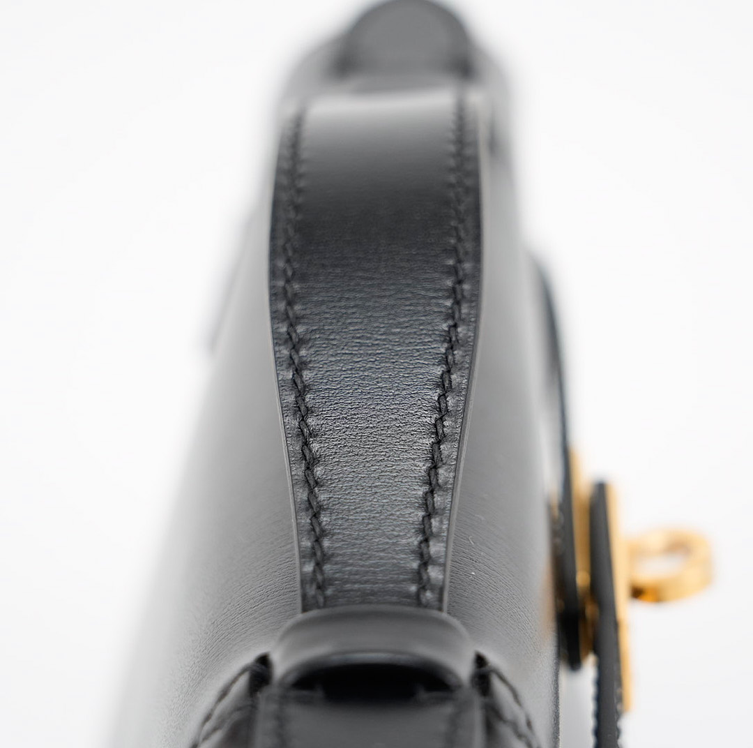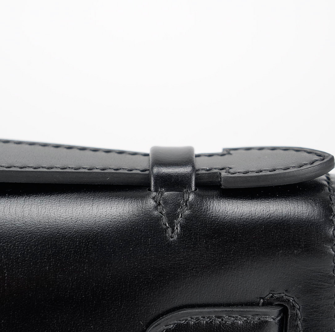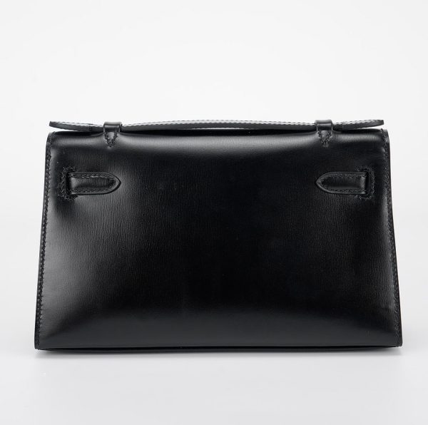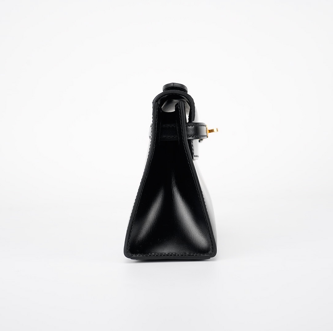 A stunning KY Pochette handcrafted from Box leather in Black, complemented by gold hardware. This elegant clutch is perfectly sized for your evening essentials. Carry it by hand or tucked under your arm for effortless sophistication.