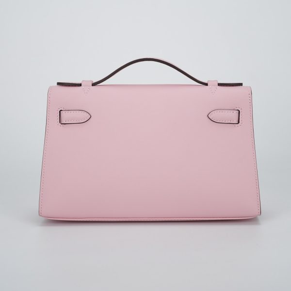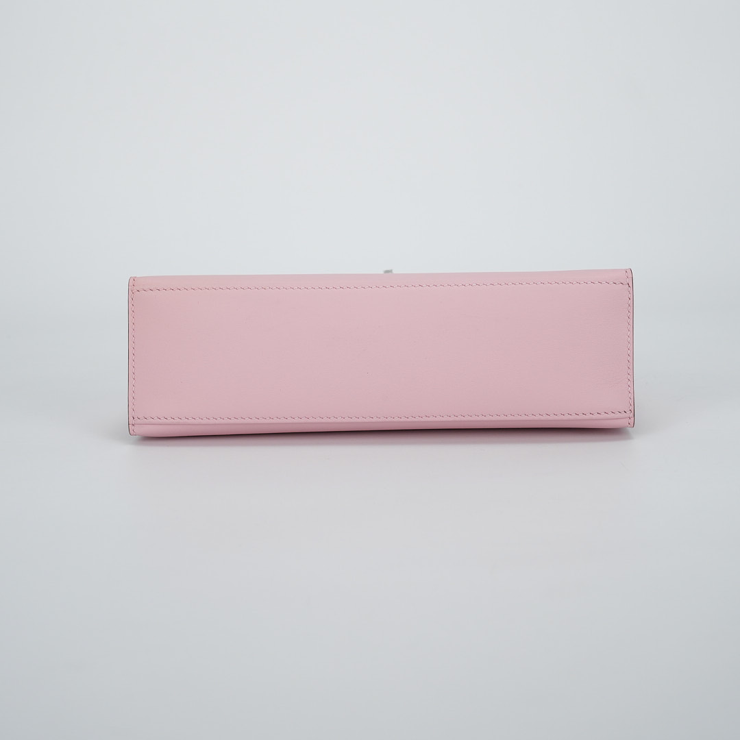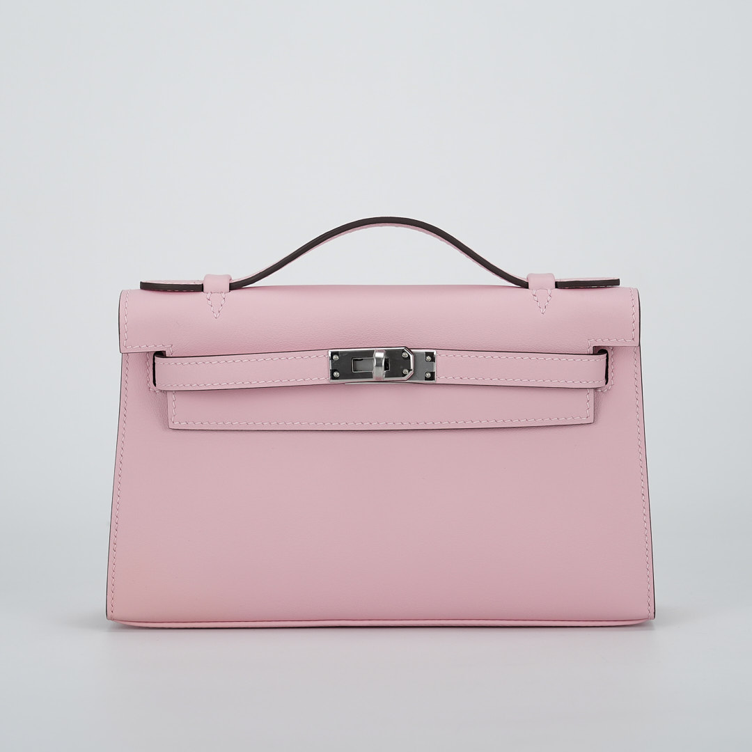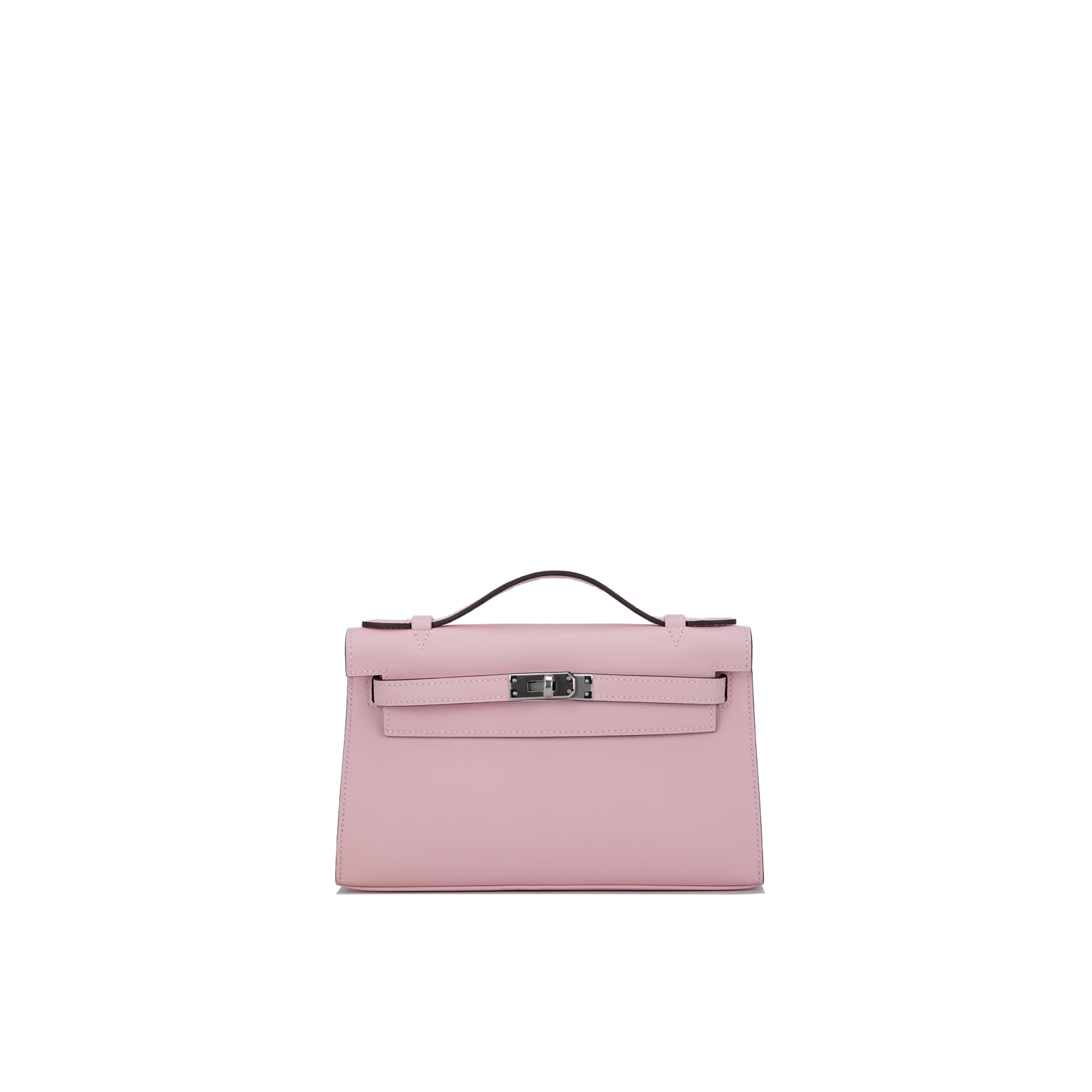 A stunning KY Pochette handcrafted from Swift leather in Rose Sakura, complemented by palladium hardware. This elegant clutch is perfectly sized for your evening essentials. Carry it by hand or tucked under your arm for effortless sophistication.