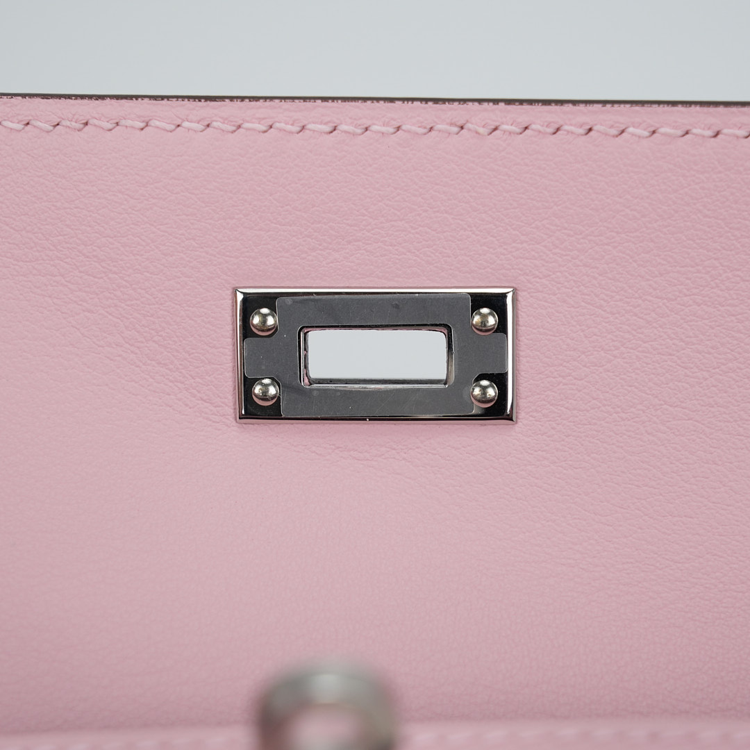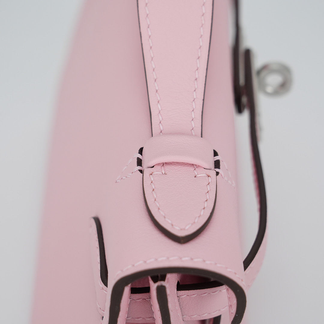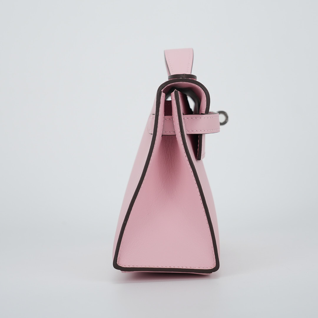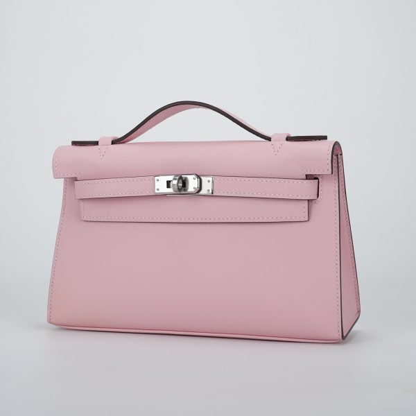 A stunning KY Pochette handcrafted from Swift leather in Rose Sakura, complemented by palladium hardware. This elegant clutch is perfectly sized for your evening essentials. Carry it by hand or tucked under your arm for effortless sophistication.