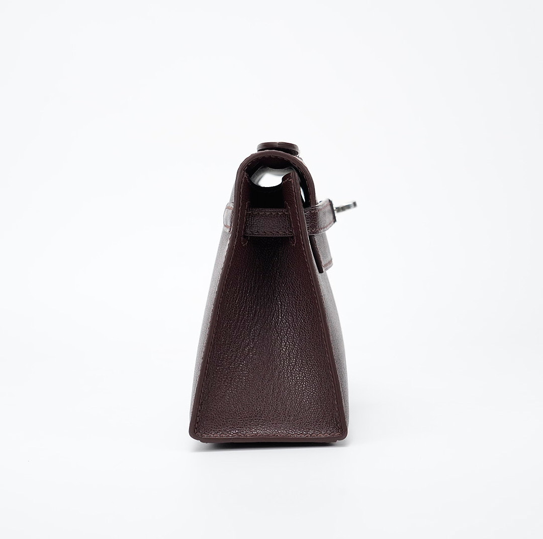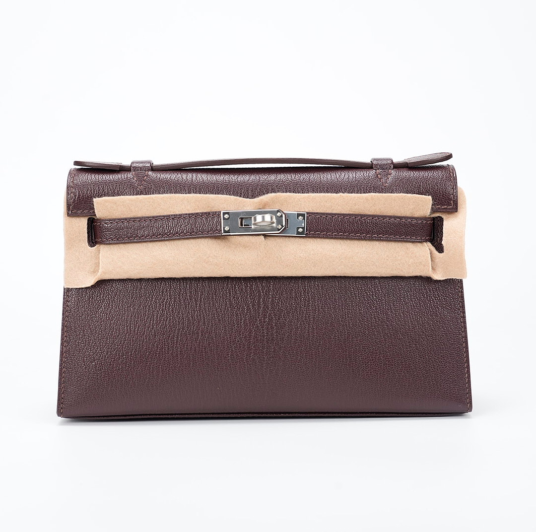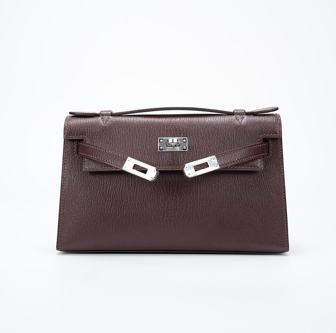 A stunning KY Pochette handcrafted from Chevrè leather in Rouge H, complemented by palladium hardware. This elegant clutch is perfectly sized for your evening essentials. Carry it by hand or tucked under your arm for effortless sophistication.