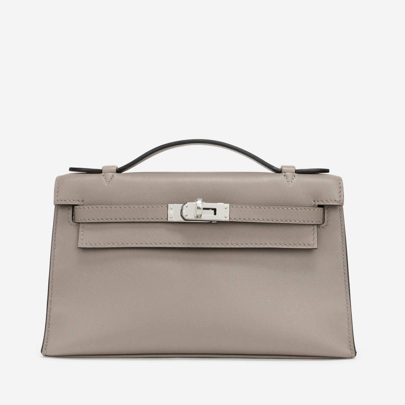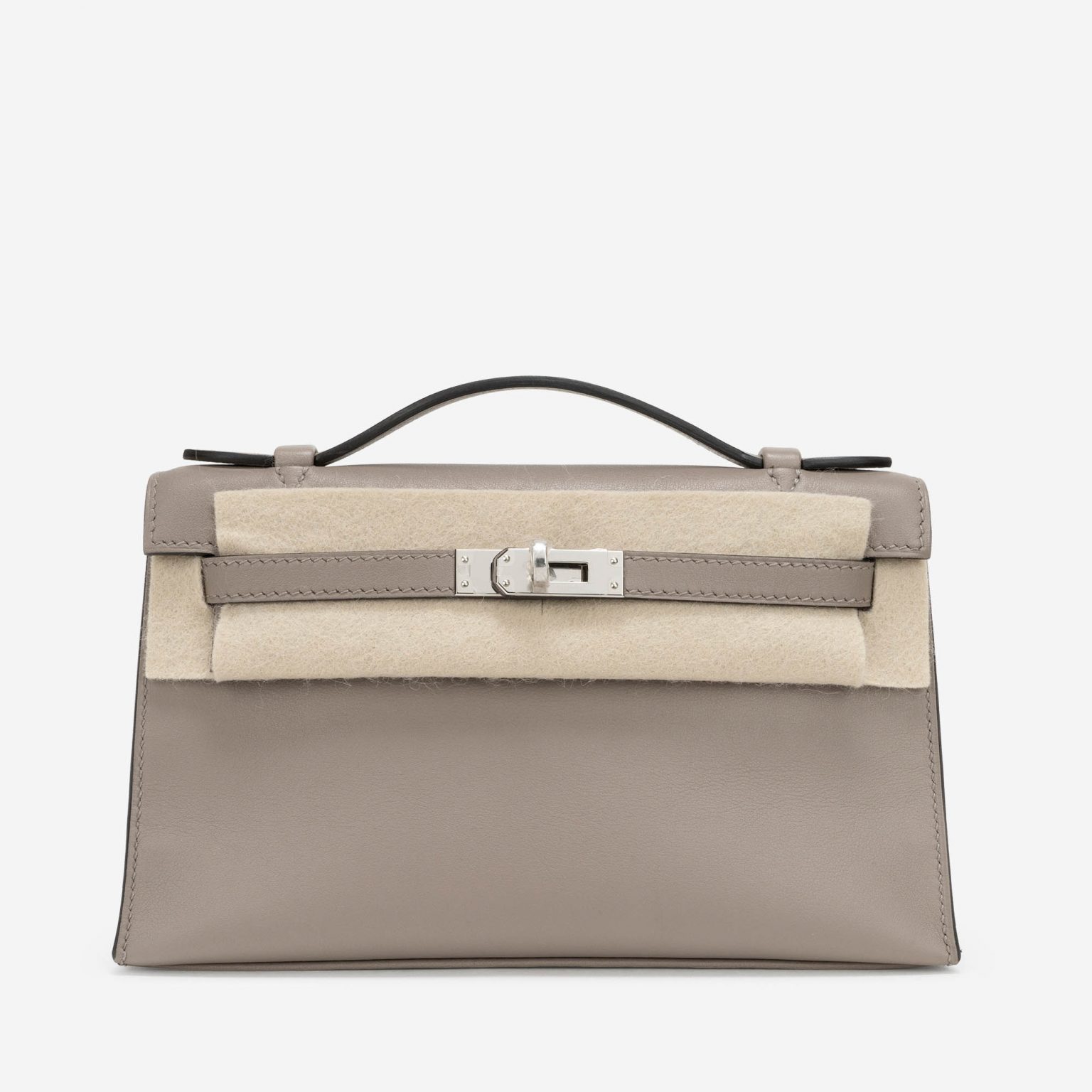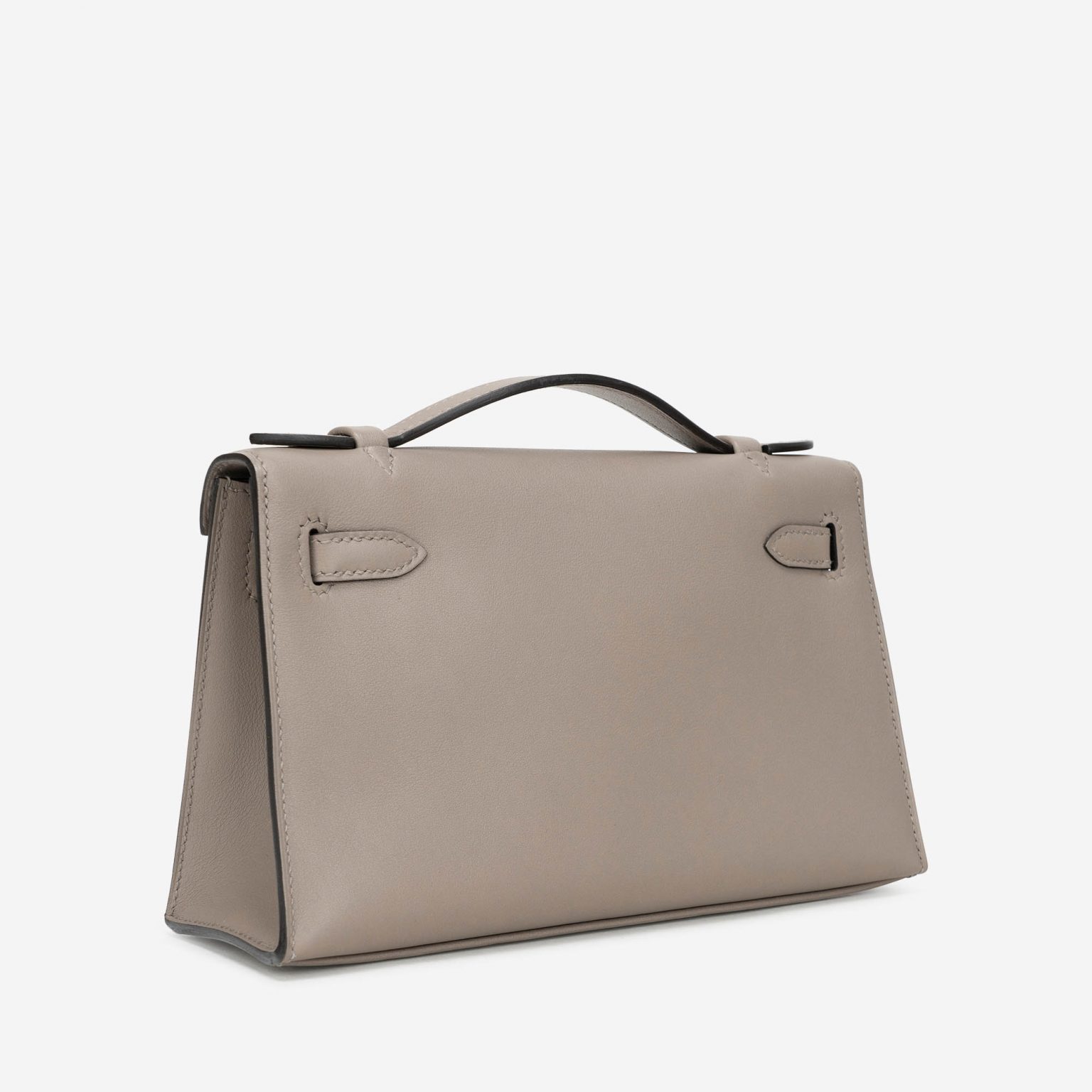 This KY Pochette is the perfect downsized KY, handcrafted from Swift leather in Gris Asphalte – a very versatile taupe shade, topped with palladium hardware. Pair it with matching jewelry and carry this evening accessory for your next night out.