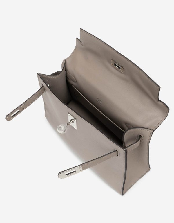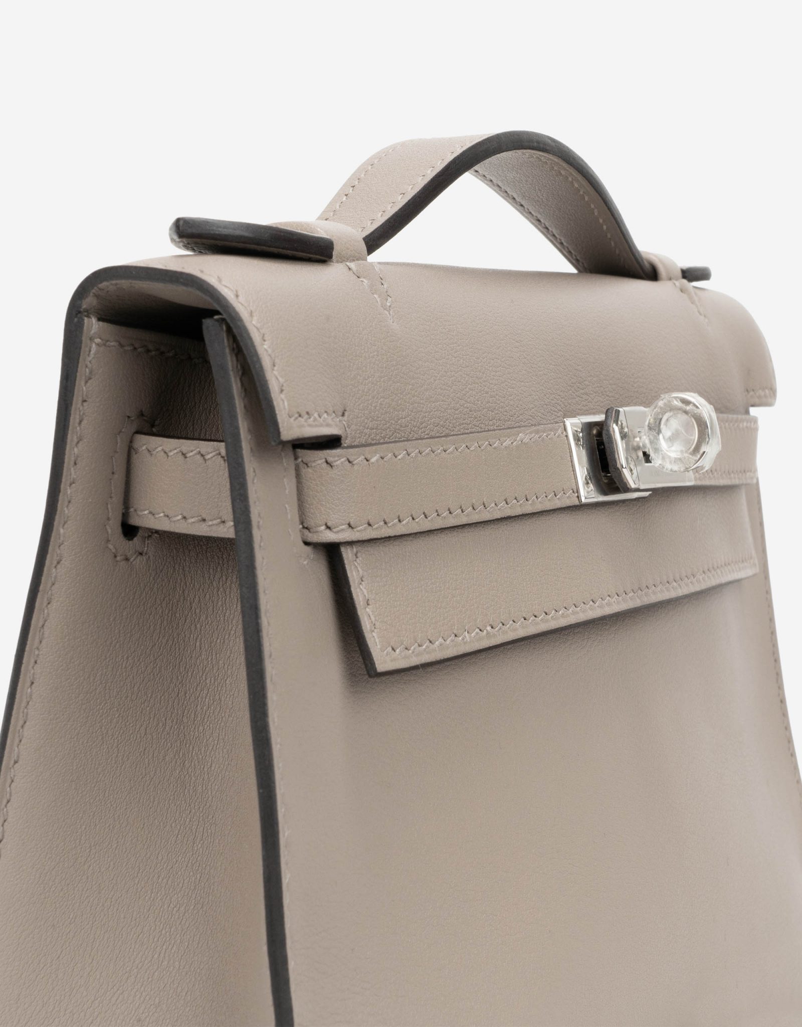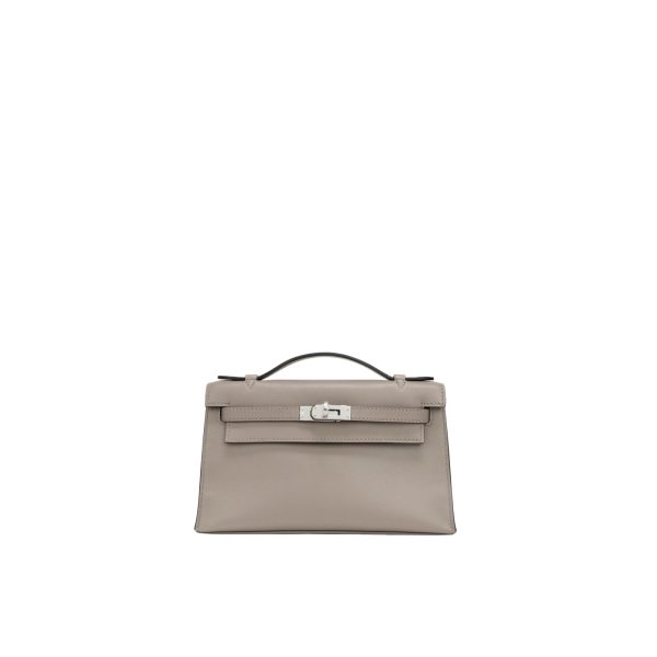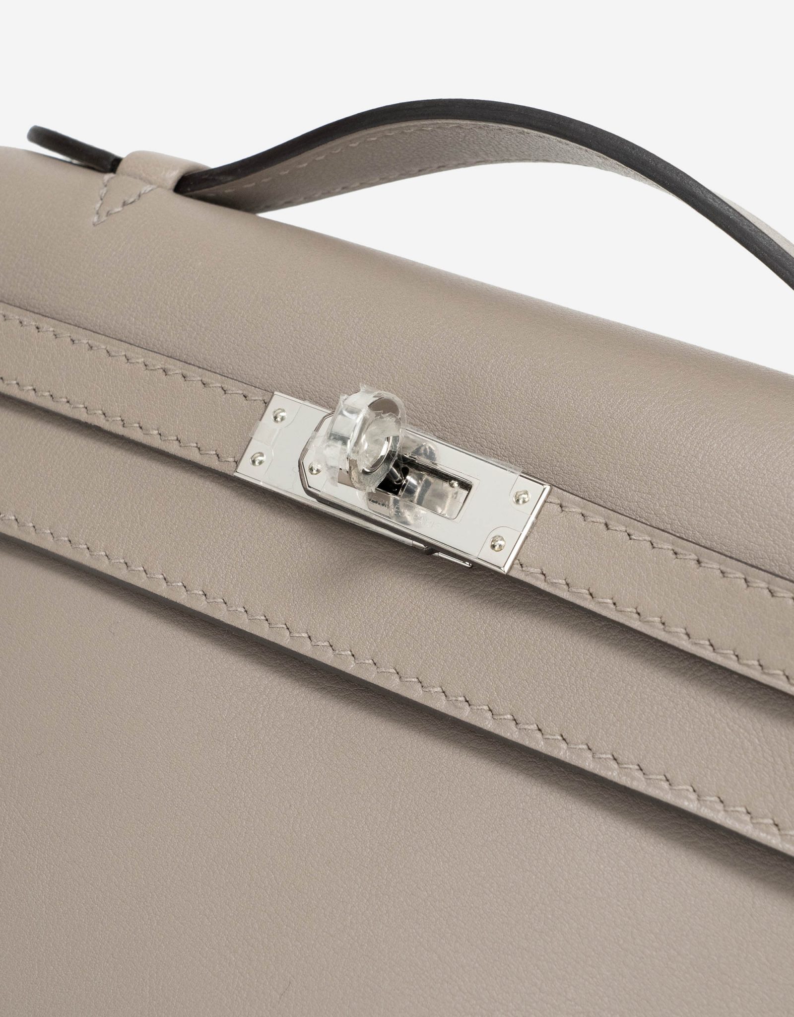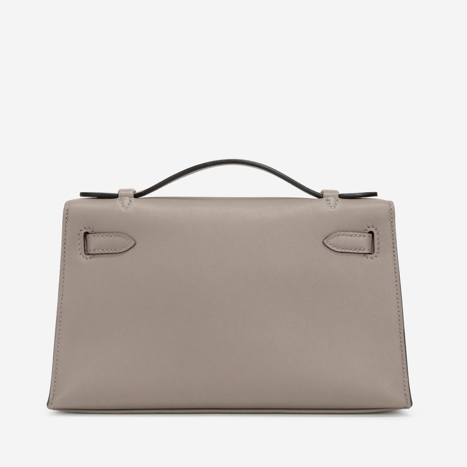 This KY Pochette is the perfect downsized KY, handcrafted from Swift leather in Gris Asphalte – a very versatile taupe shade, topped with palladium hardware. Pair it with matching jewelry and carry this evening accessory for your next night out.