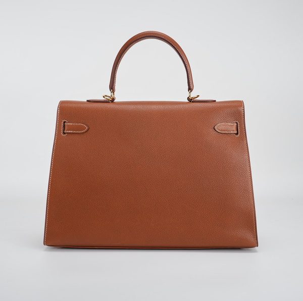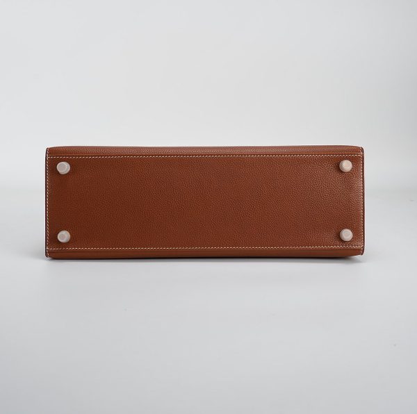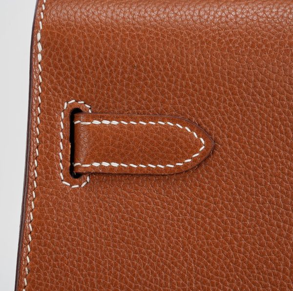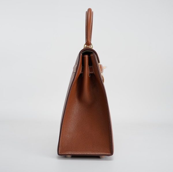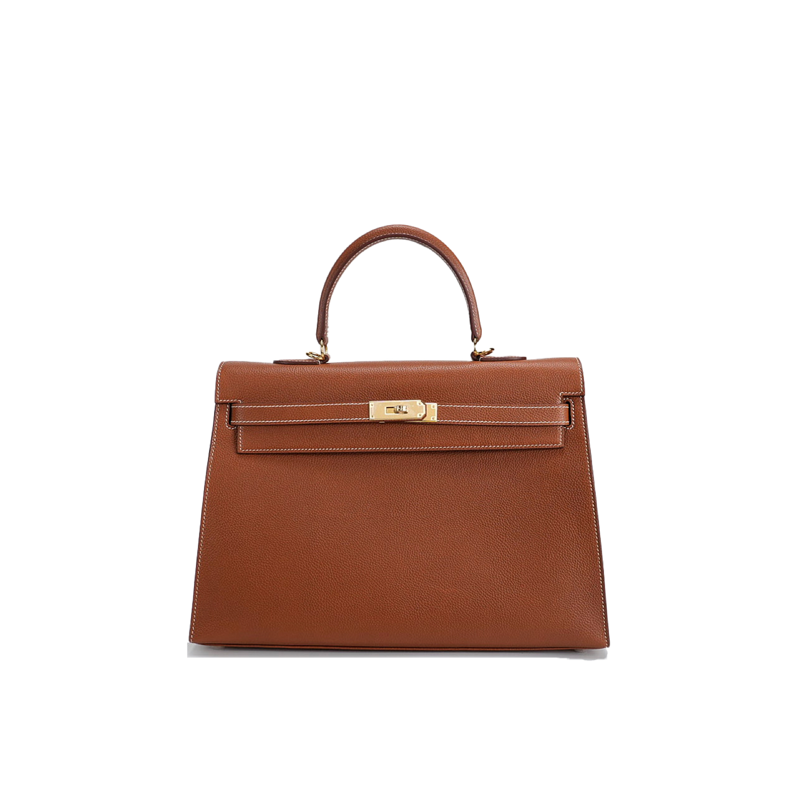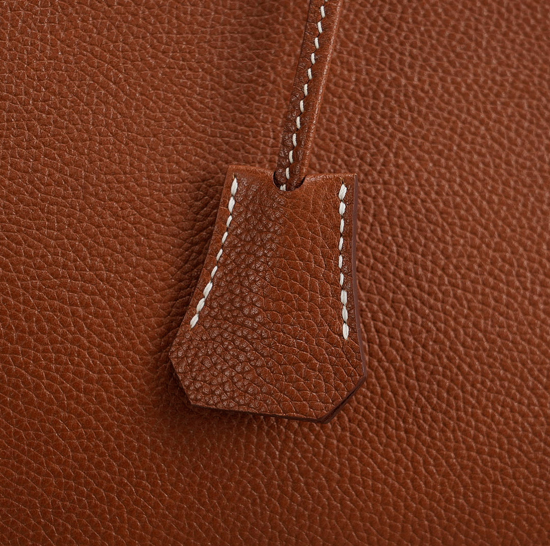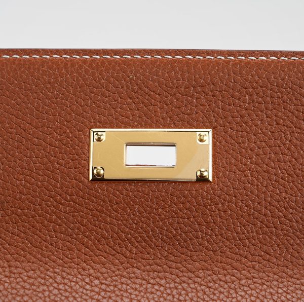 This KY 35 has been made from Barenia Faubourg, one of the most luxurious leather. Teinted in a timeless Fauve hue, it comes with contrasted white saddle stitching and gold hardware.