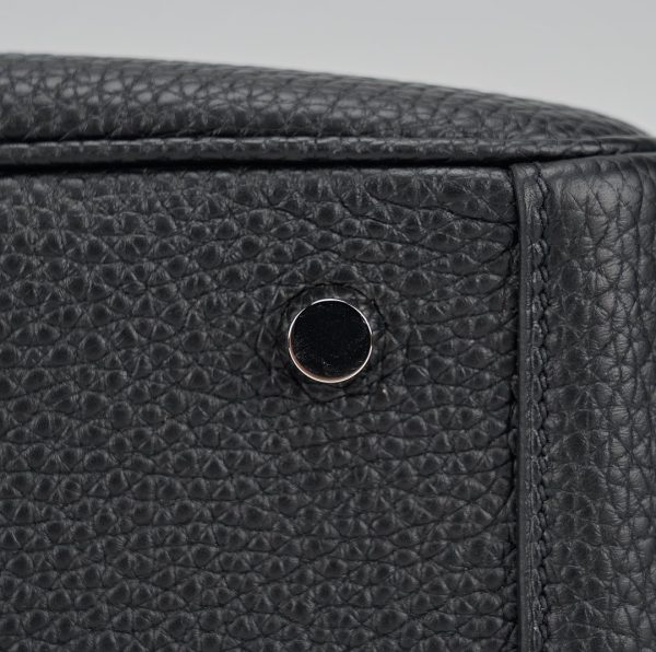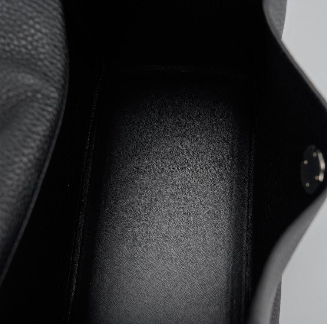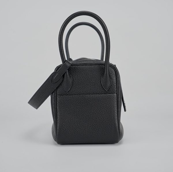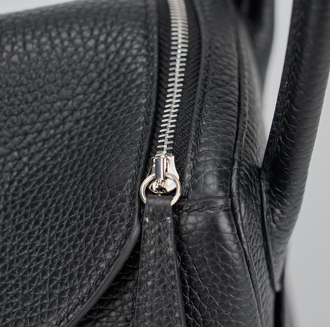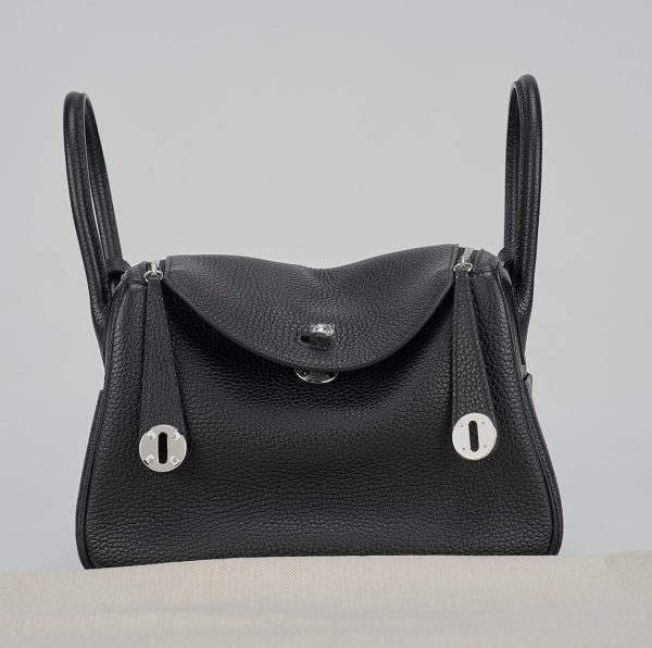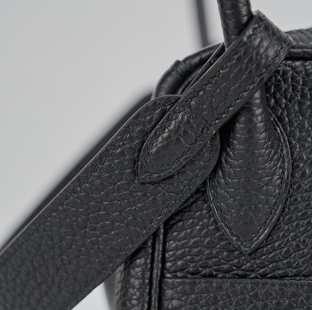 This Lindy is in Black clemence with Palladium hardware and features tonal stitching, double zipper pulls, center twist lock closure, five feet, and two top handles that are linked by a removable shoulder strap.