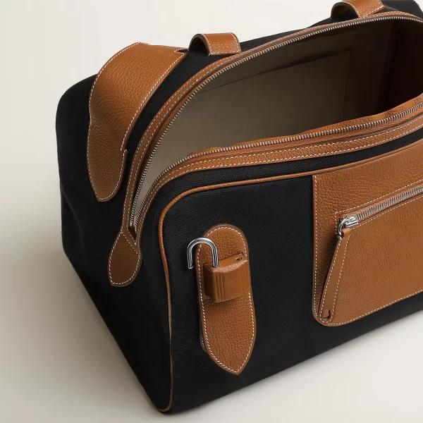 Inspired by photographers’ bags featuring multiple pockets, this line introduces a new style and gives the lock closure a signature role on the front of the bag. Loops allow for a short or long carry.