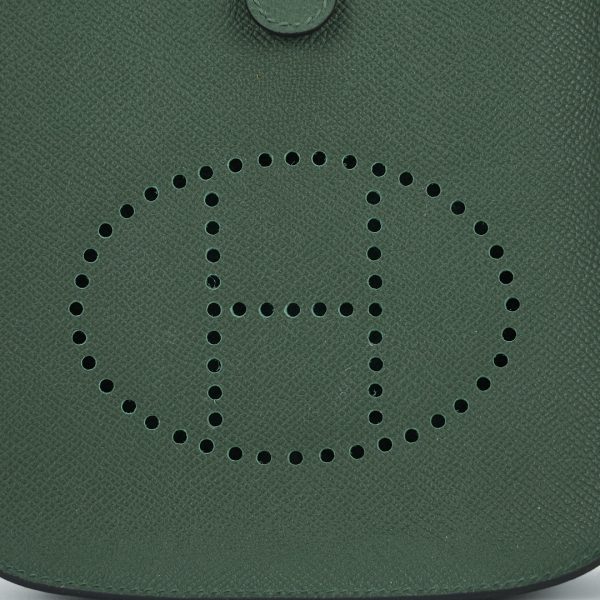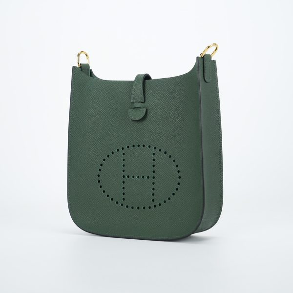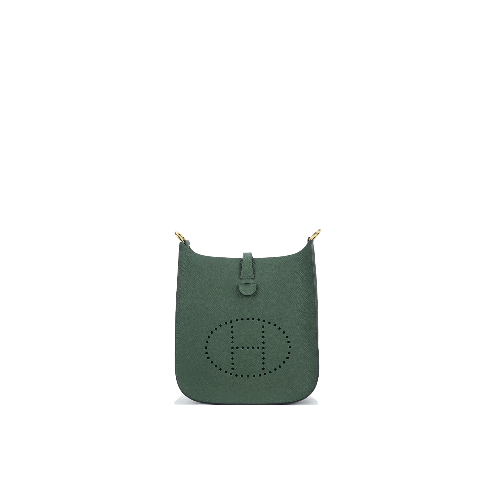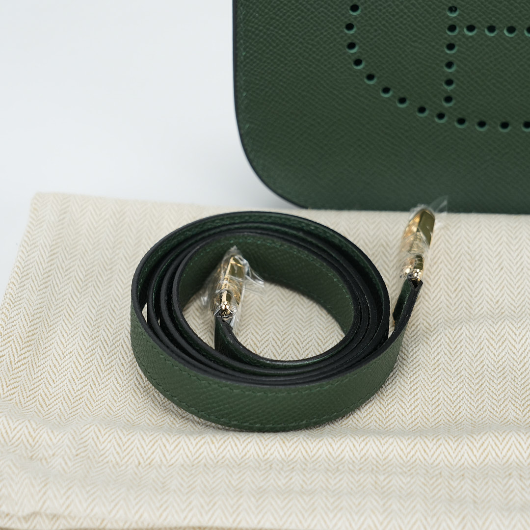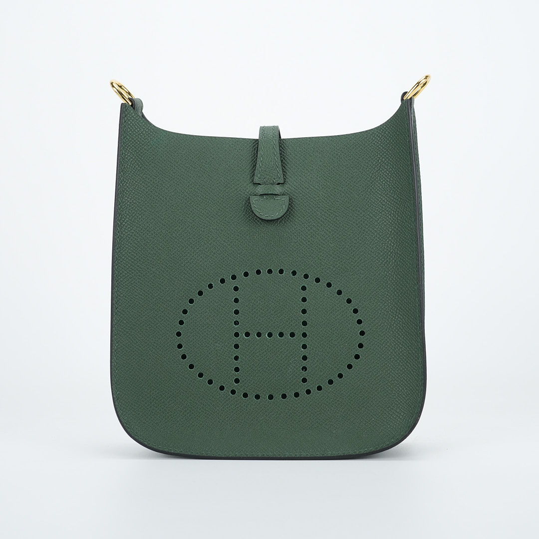 Vert Mangrove Epsom Mini Evelyne II TPM 16 Gold Hardware, The interior is unlined,Includes a strap, care booklet, dust bag and box.