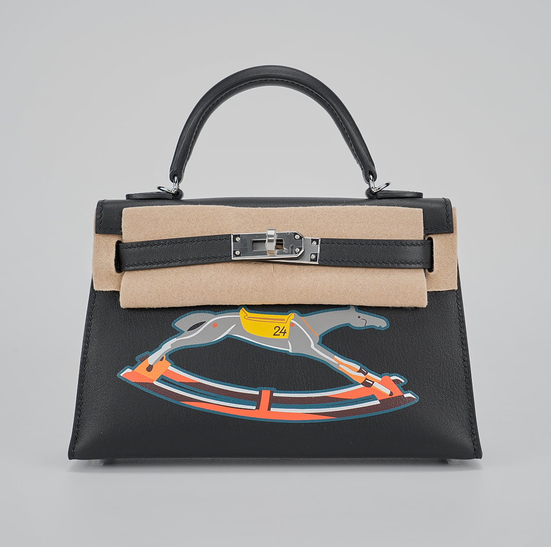 Small in size, yet rich in character, this Mini KY is a true collector’s dream. Handcrafted from Black Tadelakt leather, its compact, structured design is elevated by a simply stunning Cheval de Bois marquetry motif — a masterpiece in its own right. This exceptional piece will spark endless conversations at your next dinner.