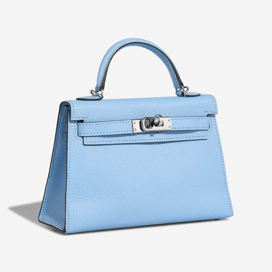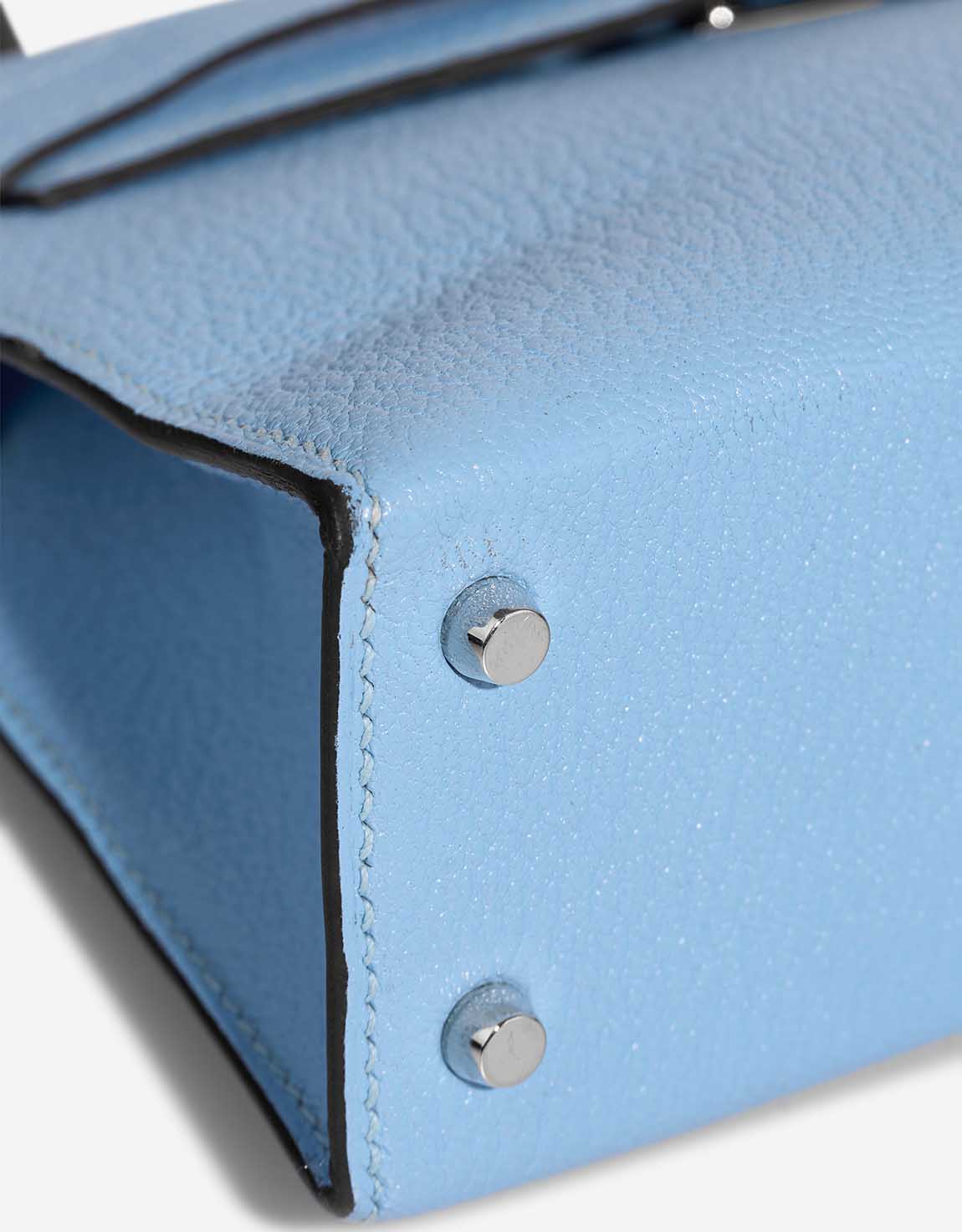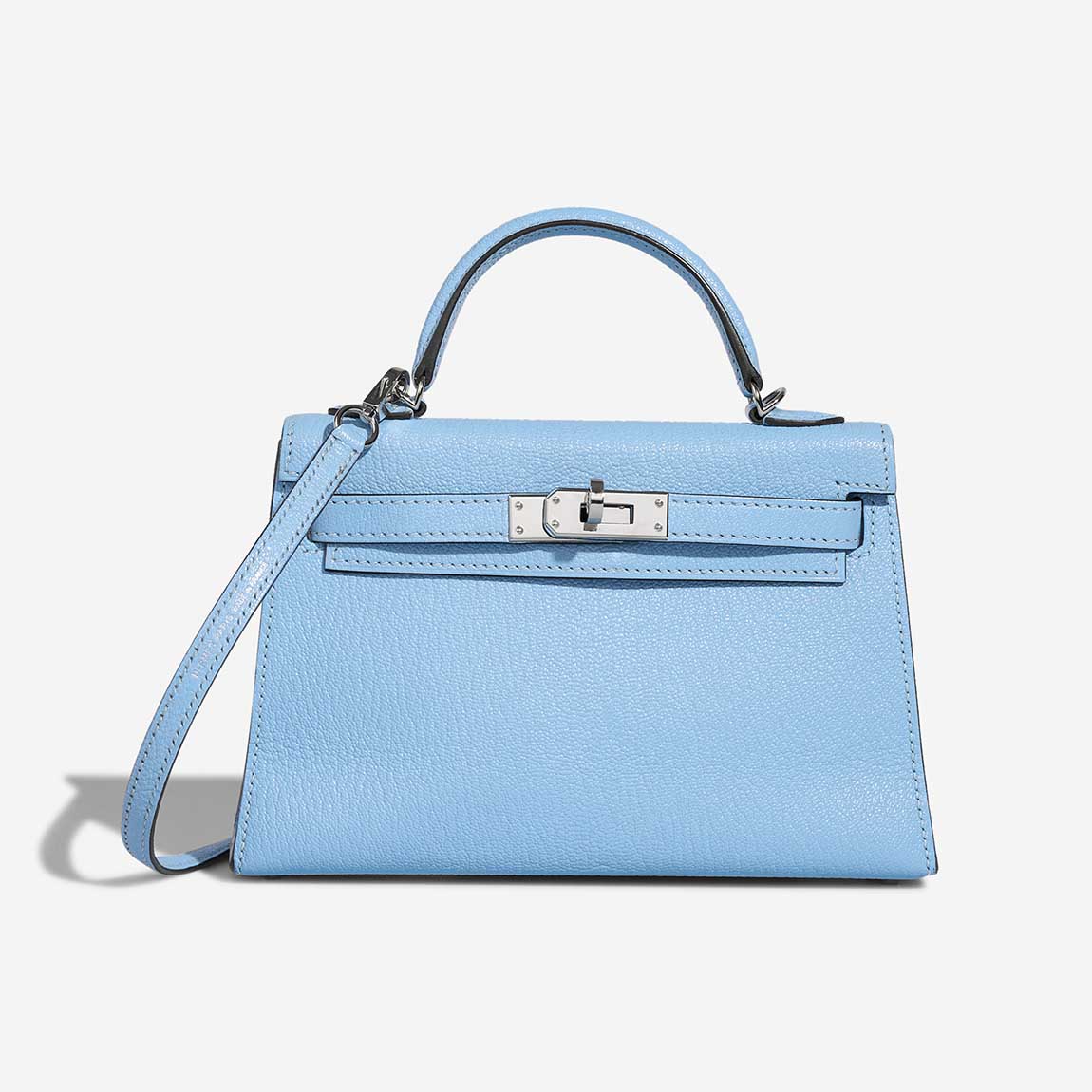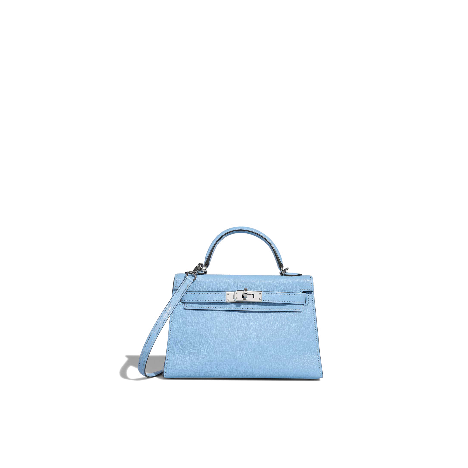 A delightful KY Mini in Bleu Céleste Chèvre Mysore leather. Adorned with palladium hardware.