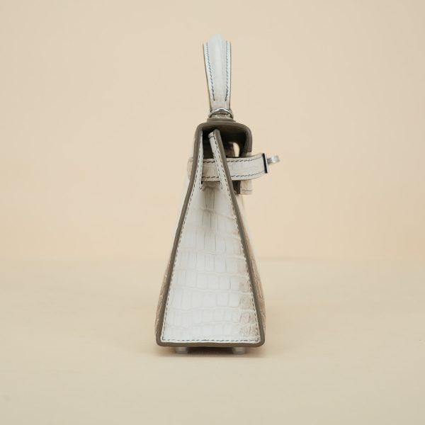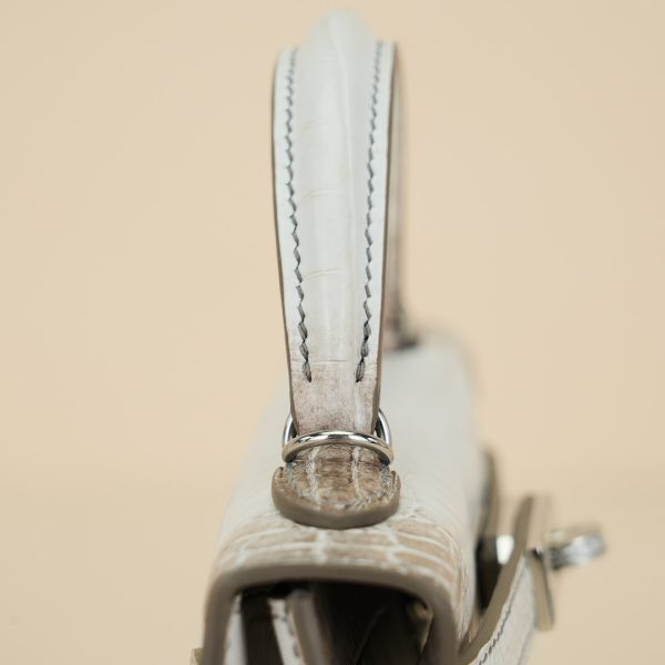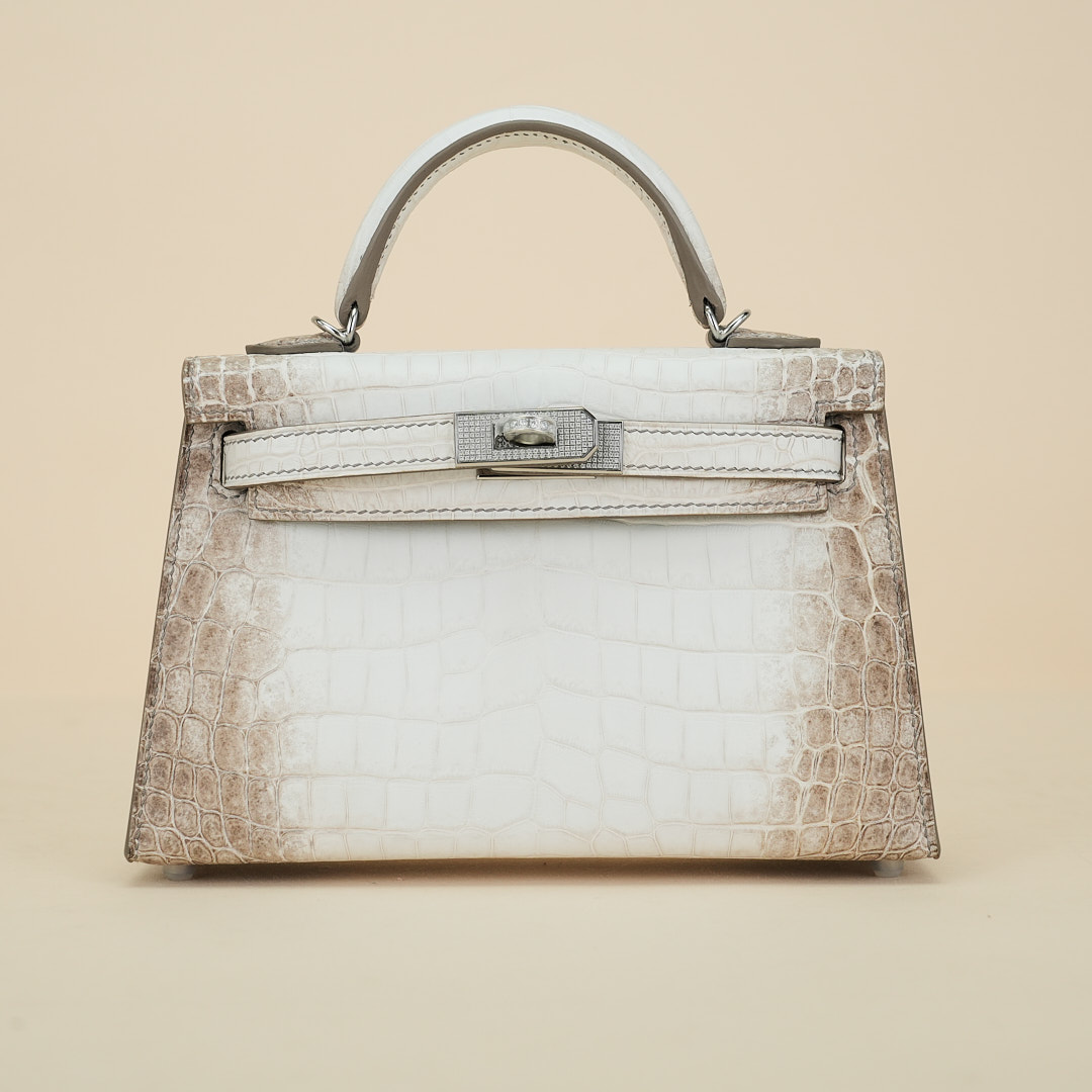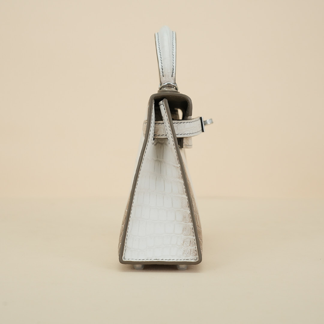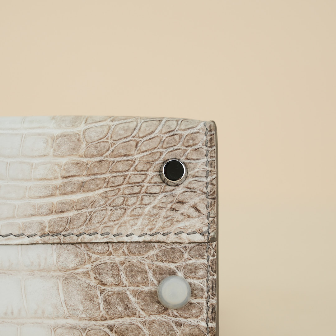 An exotic mini KY handcrafted from Himalaya Niloticus Crocodile leather. Colored in White, the design is inspired by the colors of the Himalayan mountain range, topped with palladium hardware.