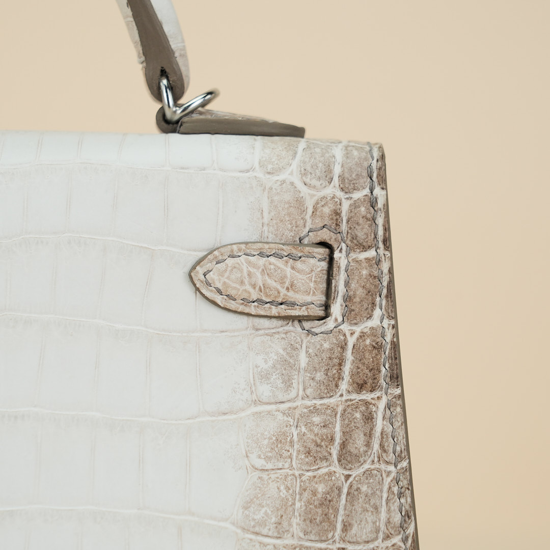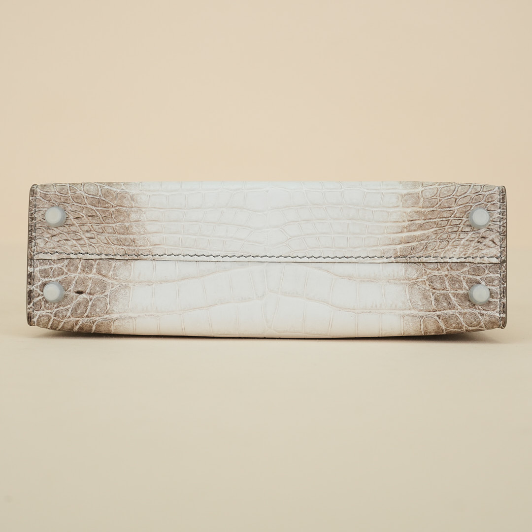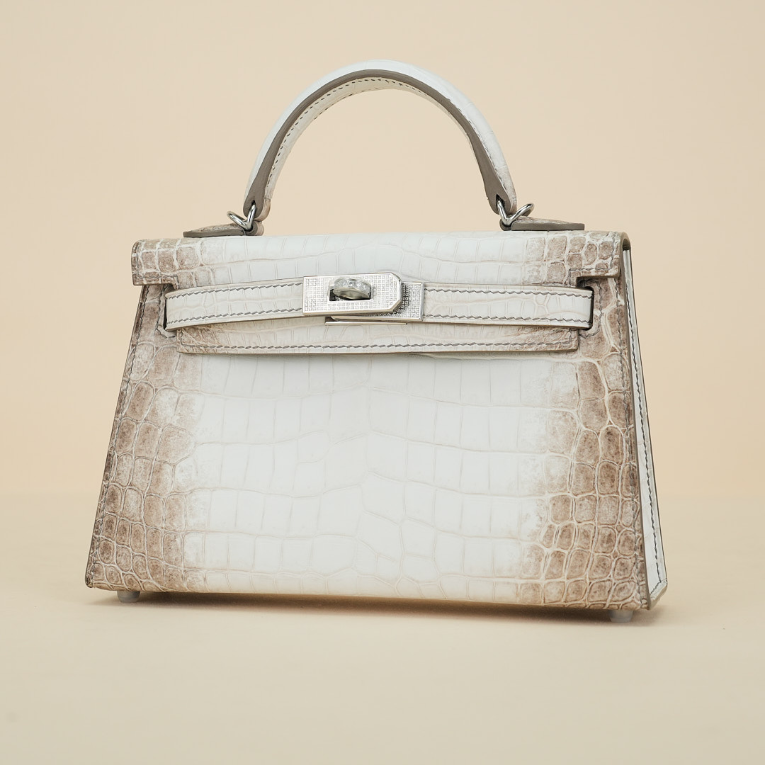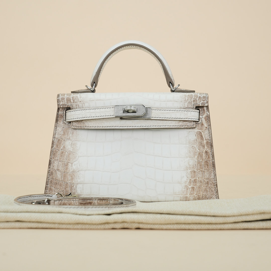 An exotic mini KY handcrafted from Himalaya Niloticus Crocodile leather. Colored in White, the design is inspired by the colors of the Himalayan mountain range, topped with palladium hardware.
