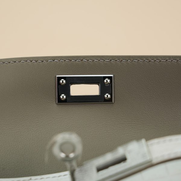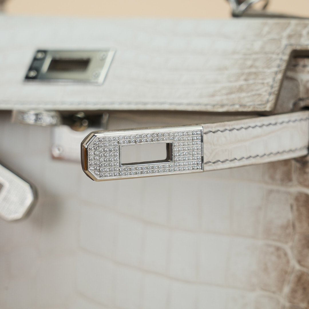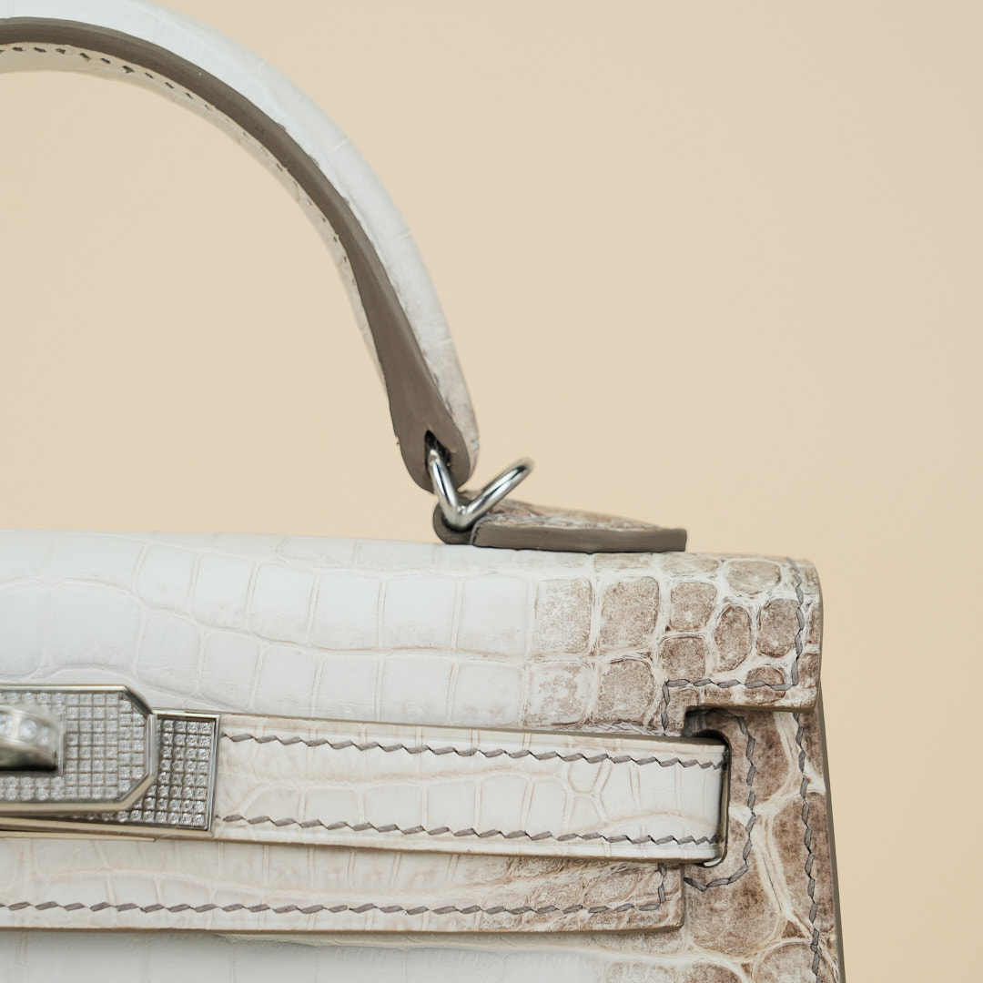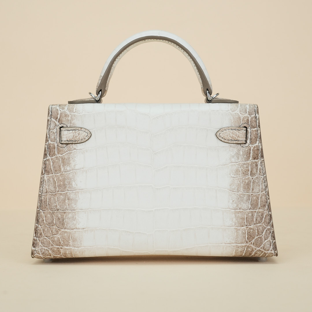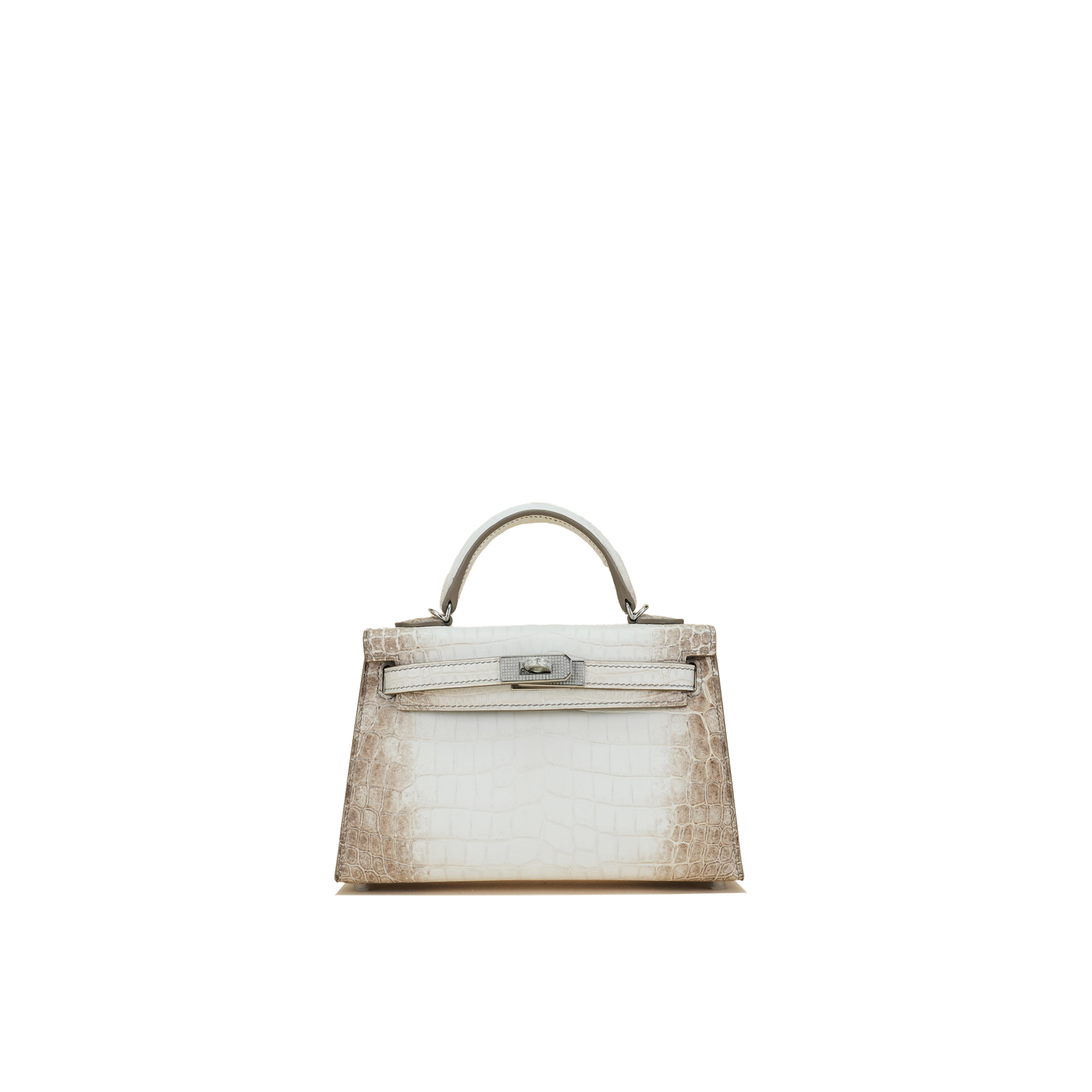 An exotic mini KY handcrafted from Himalaya Niloticus Crocodile leather. Colored in White, the design is inspired by the colors of the Himalayan mountain range, topped with palladium hardware.