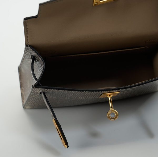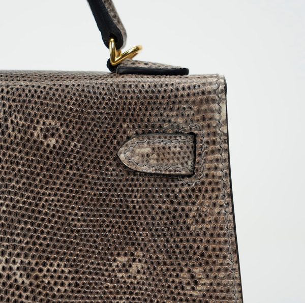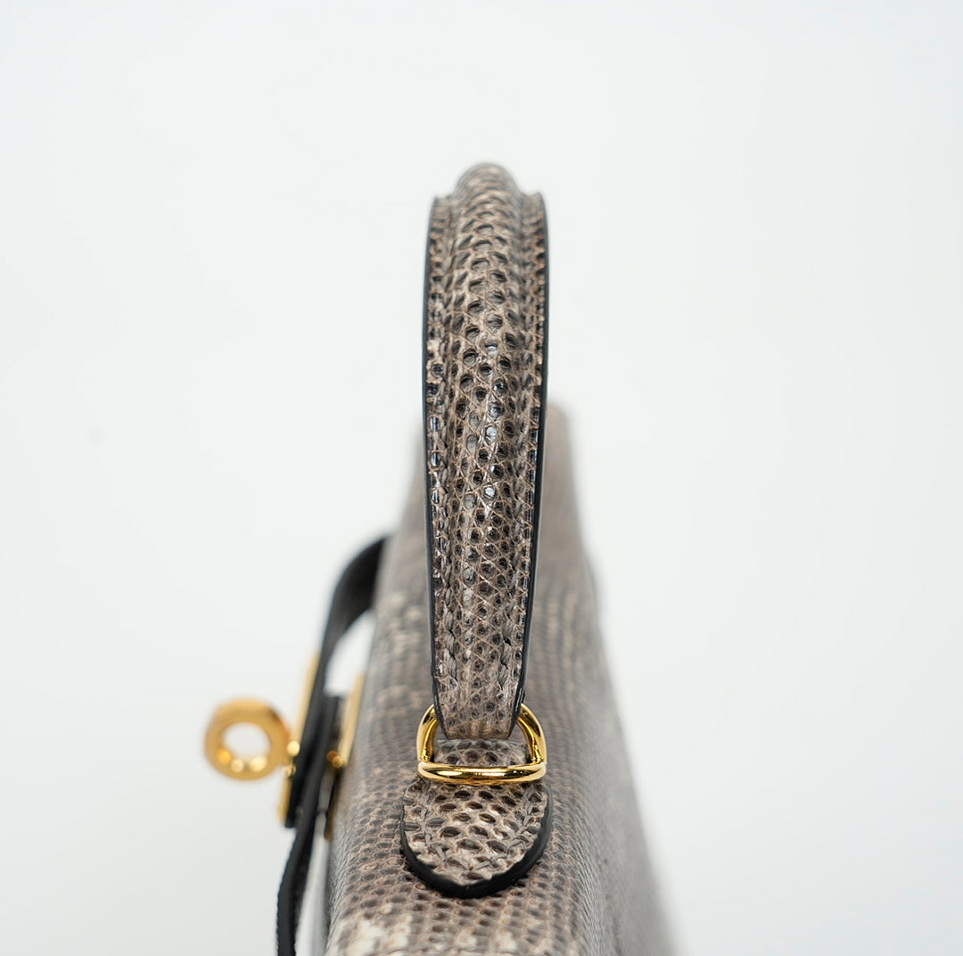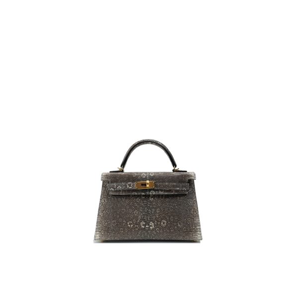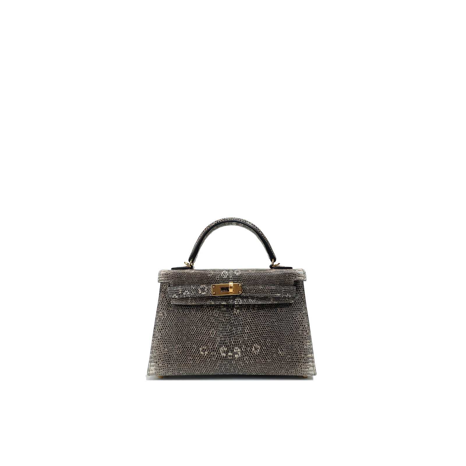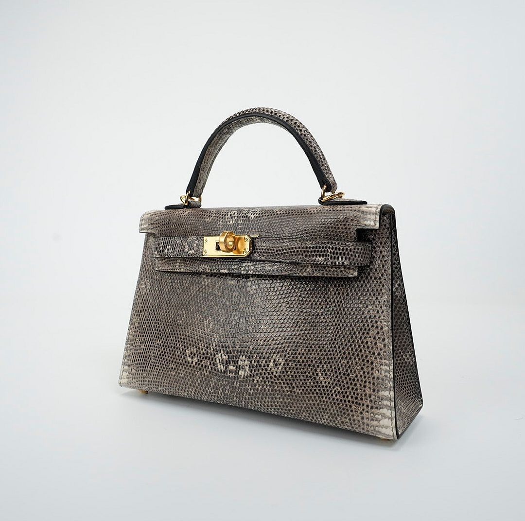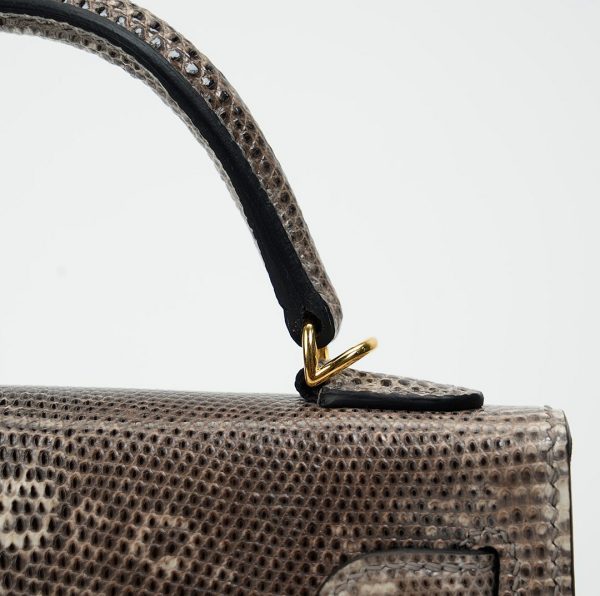 An exotic Mini KY handcrafted from Lizard leather. It is enhanced with gold-plated hardware.