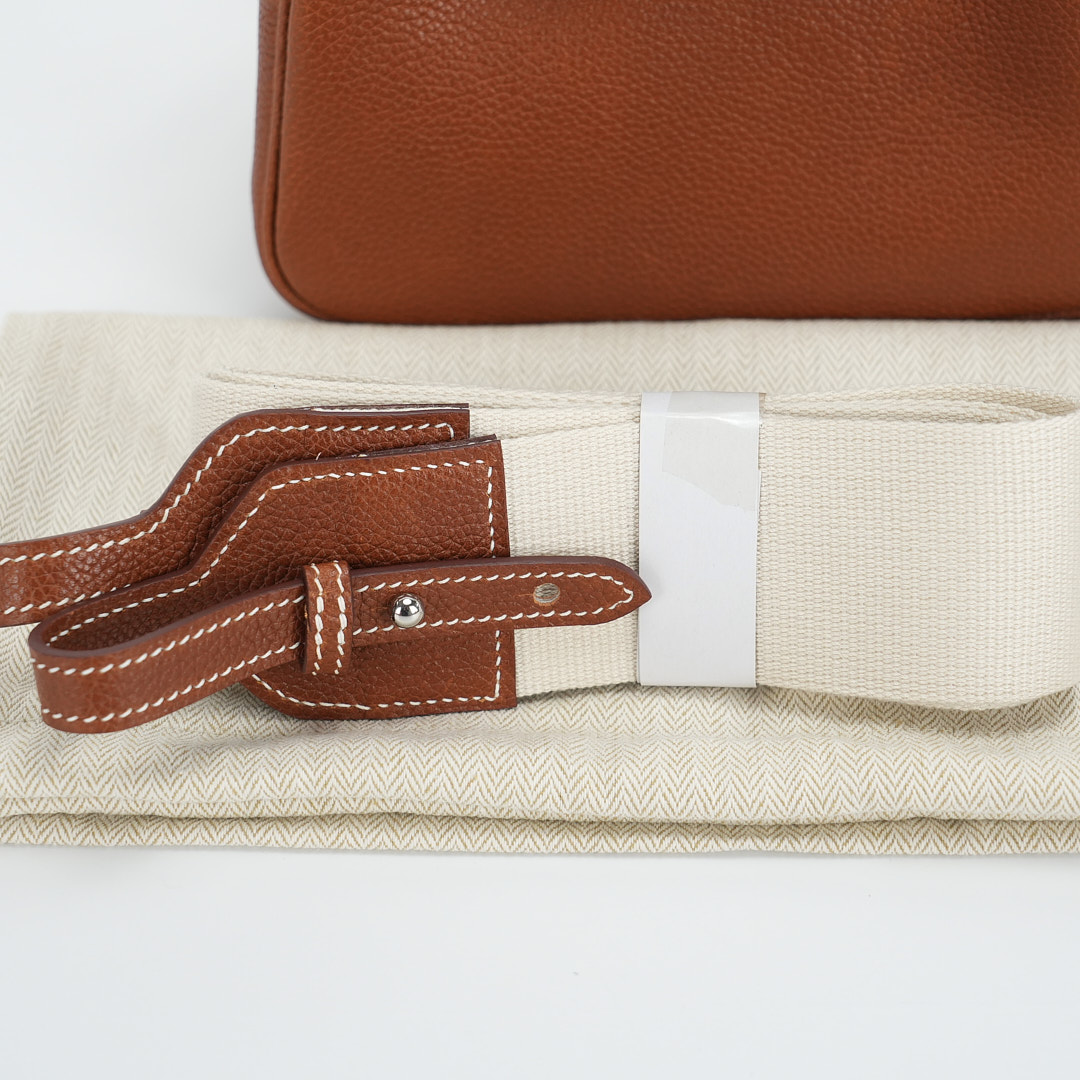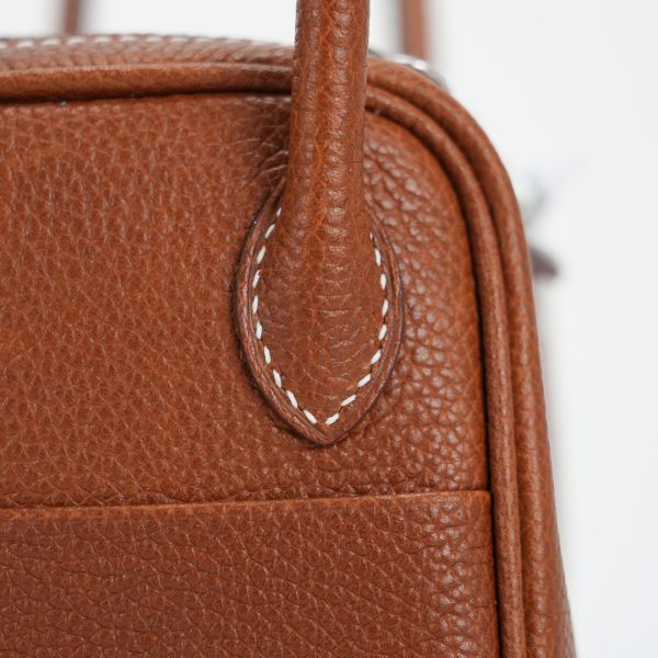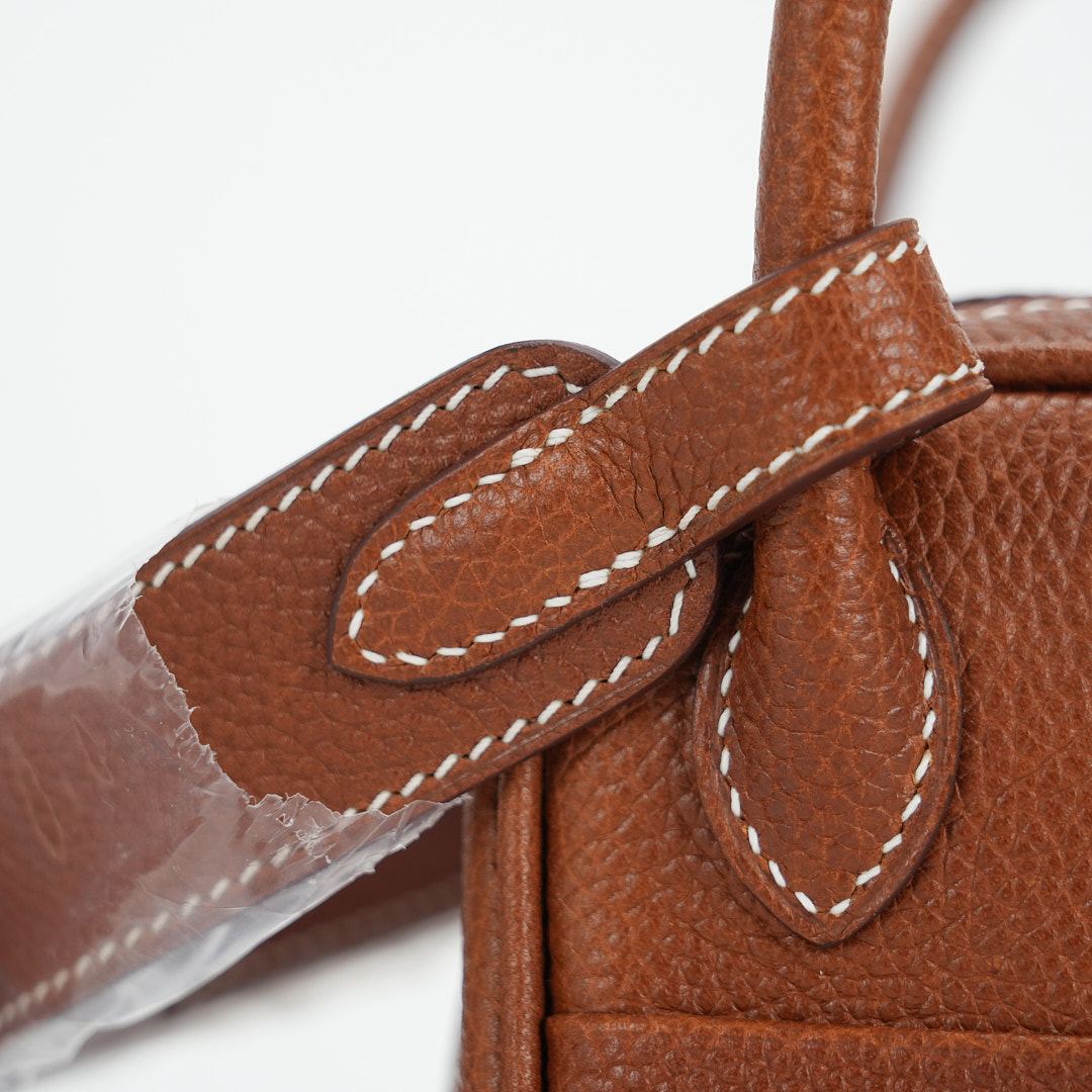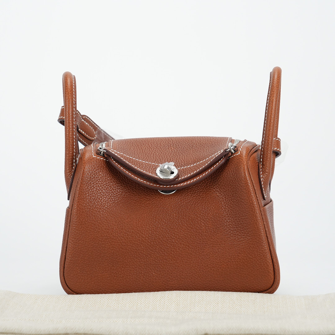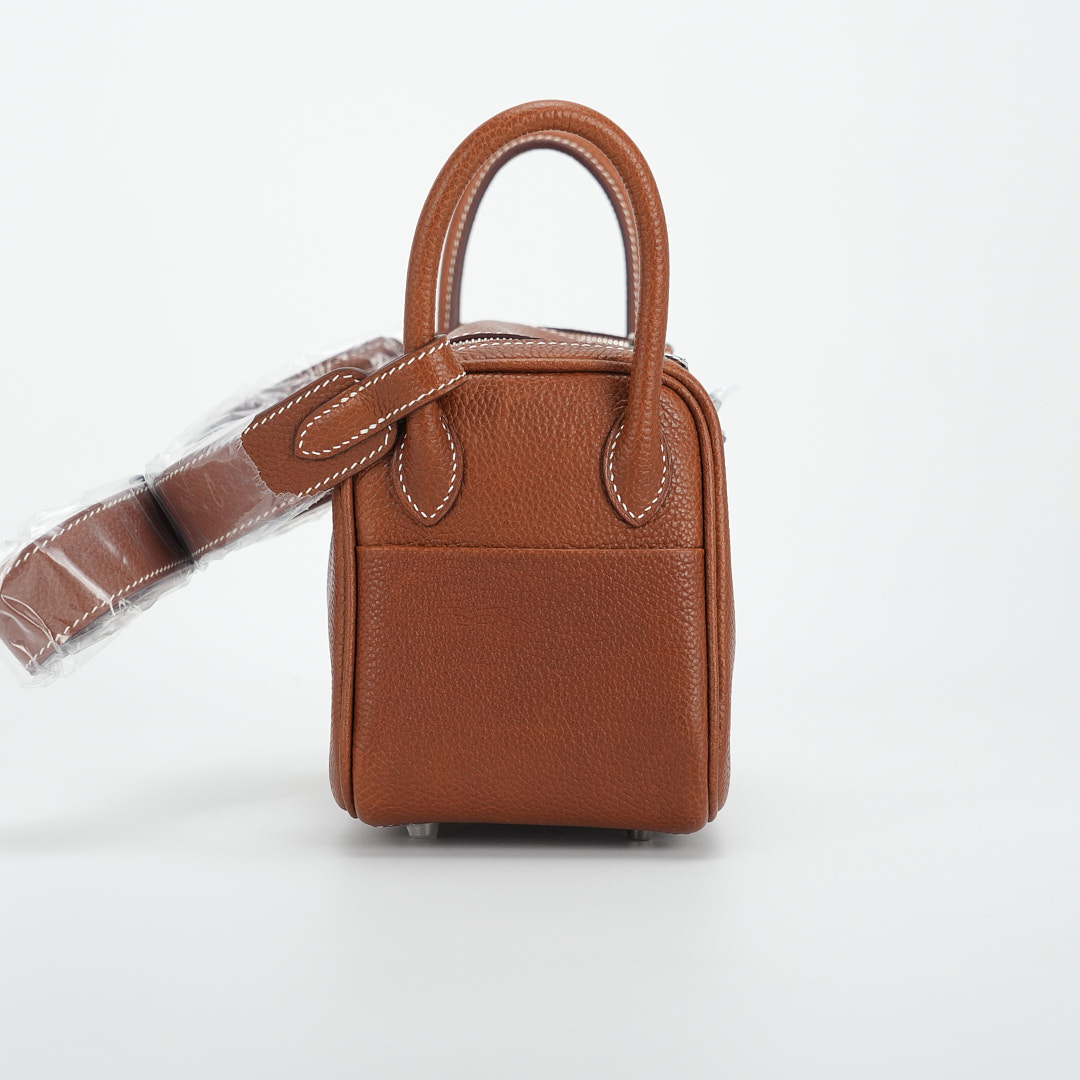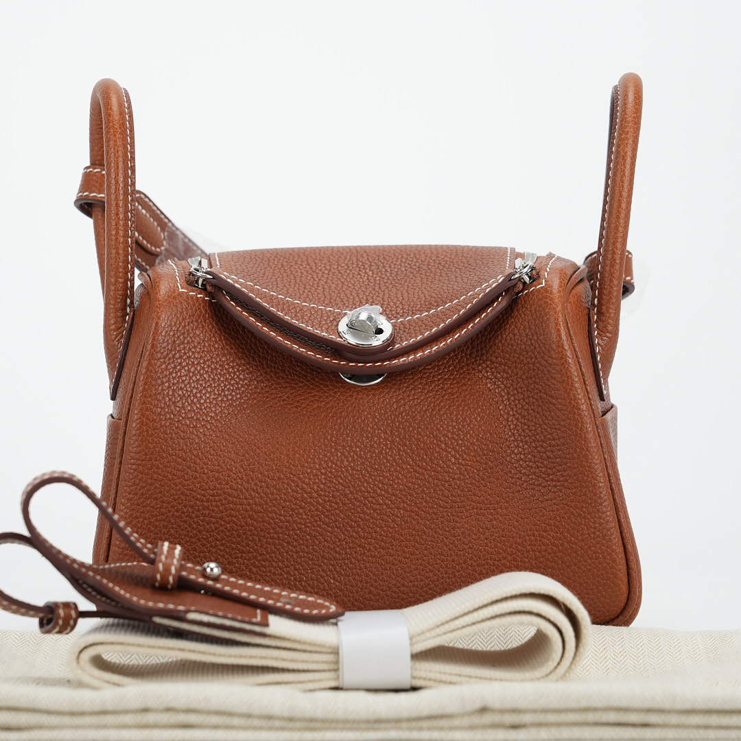 The sculptural silhouette of the Lindy allows you to carry it in a variety of ways – by the side handles in your hand, elegantly in the crook of your arm or casually over your shoulder with the extended shoulder strap. This Lindy Mini was handcrafted in Barenia Faubourg leather in the color Gold.