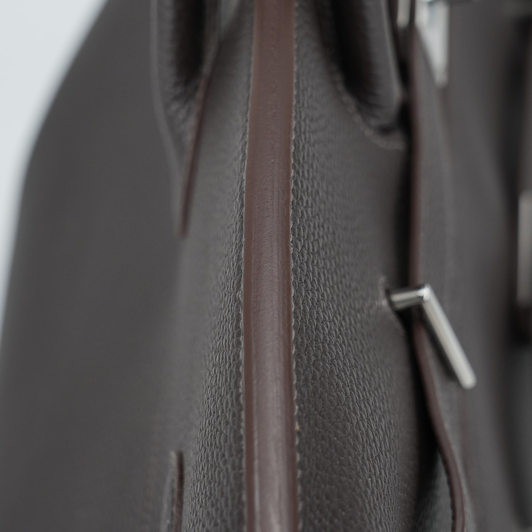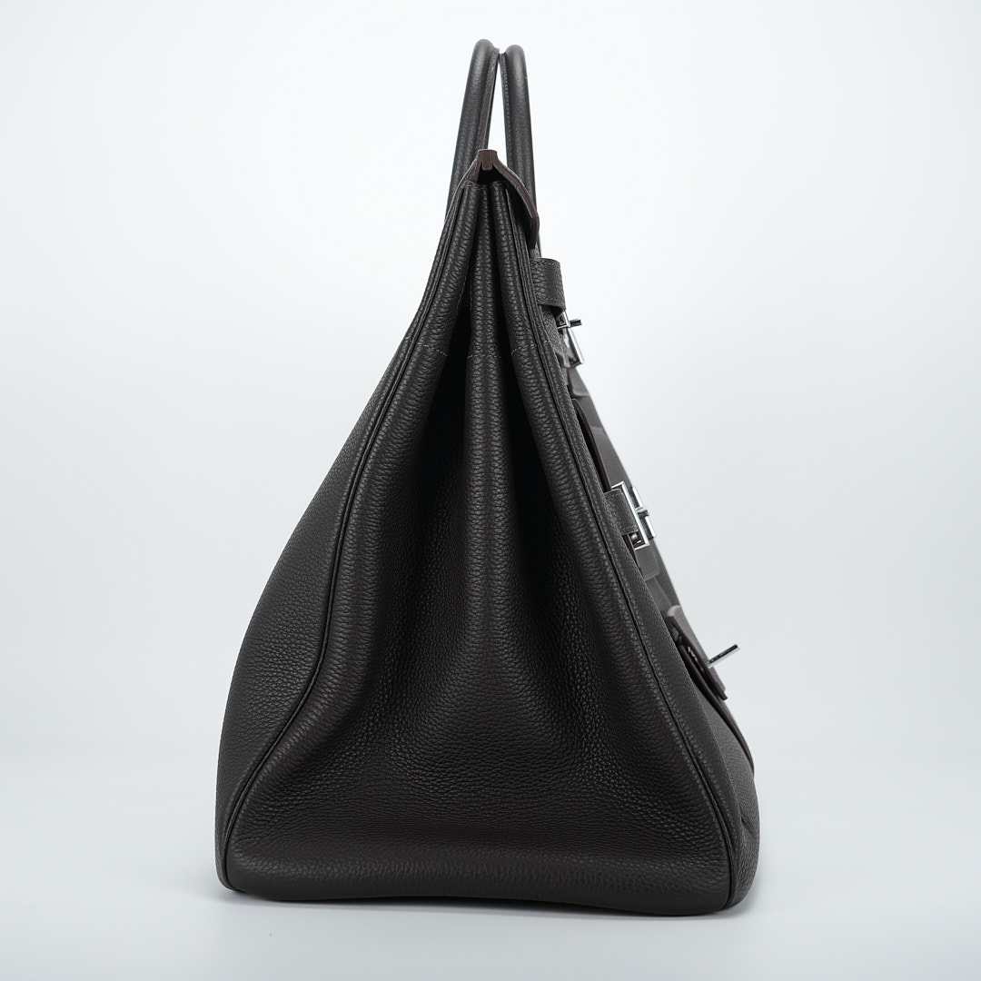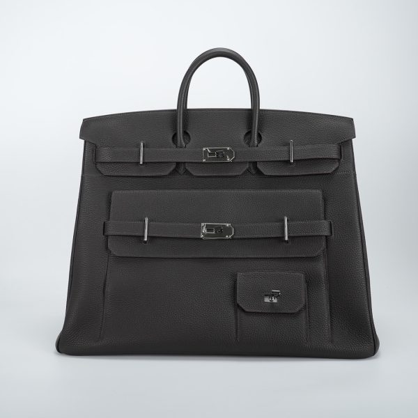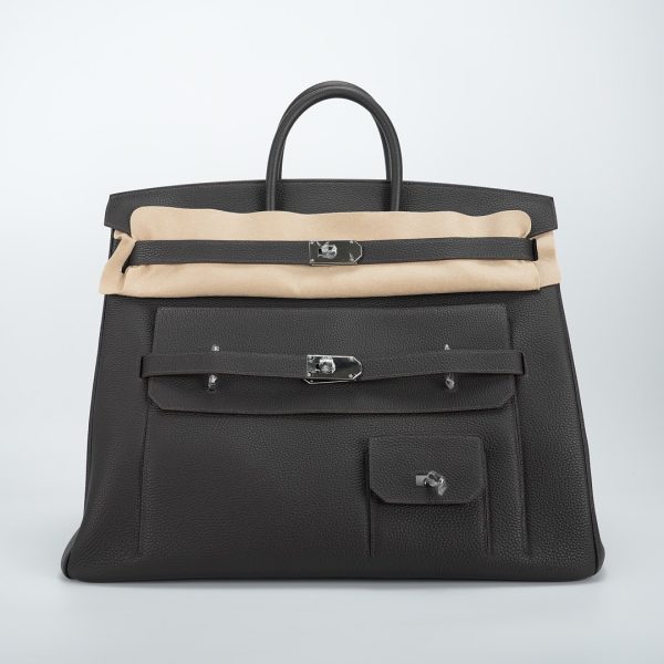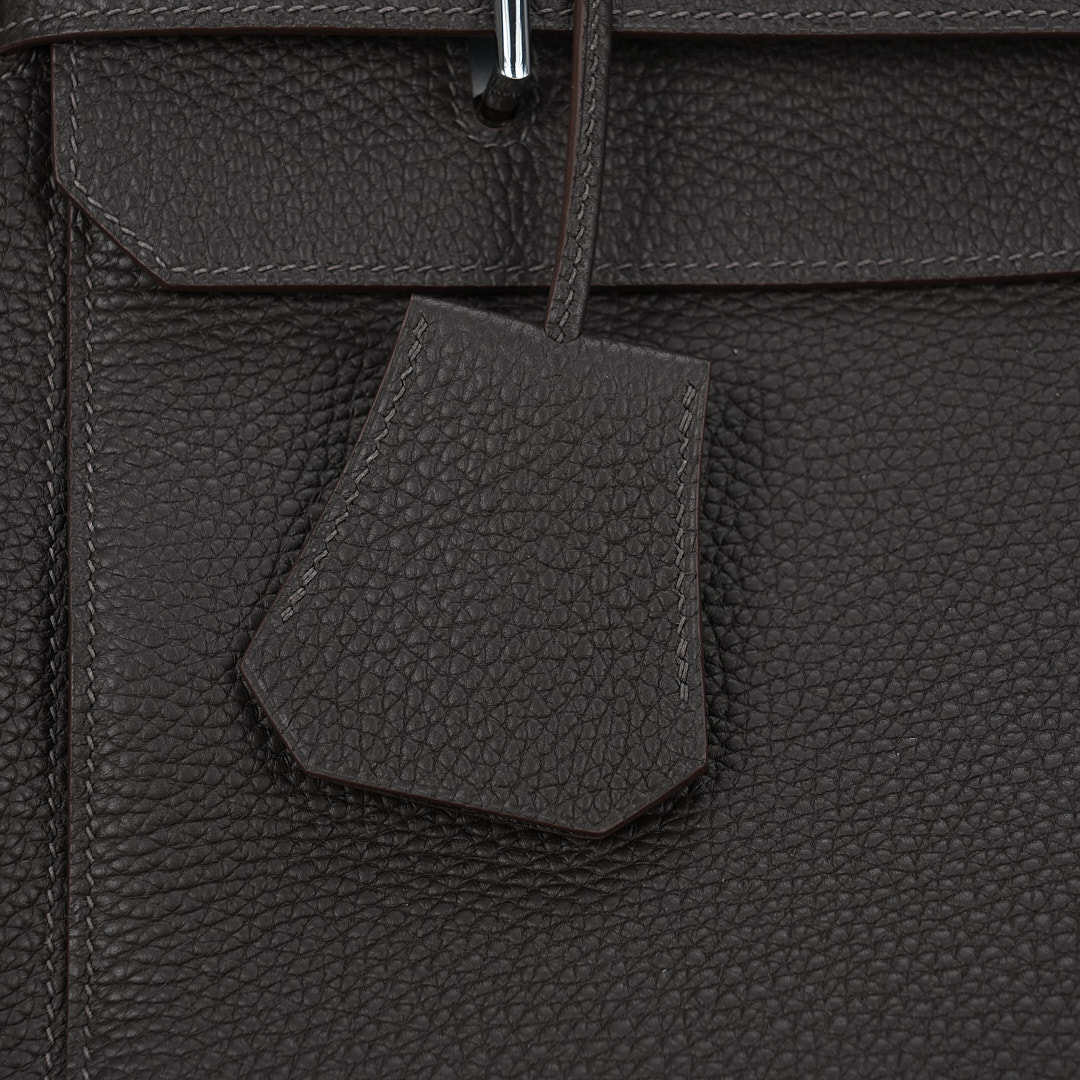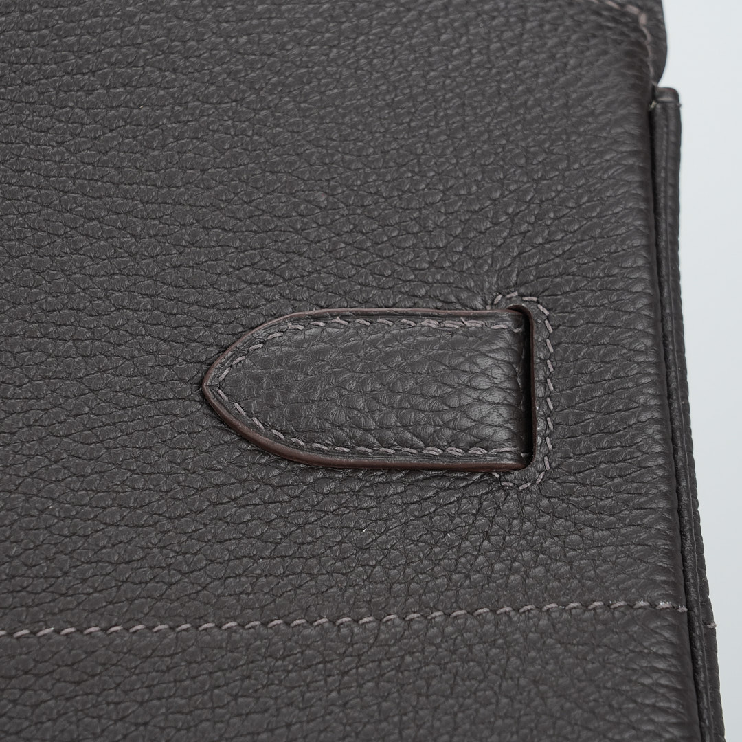 Embrace timeless elegance with this Ecorce Café Multi-Pockets 50 in Taurillon Clemence leather. This spacious bag pays homage to equestrian heritage while meeting modern lifestyle needs.