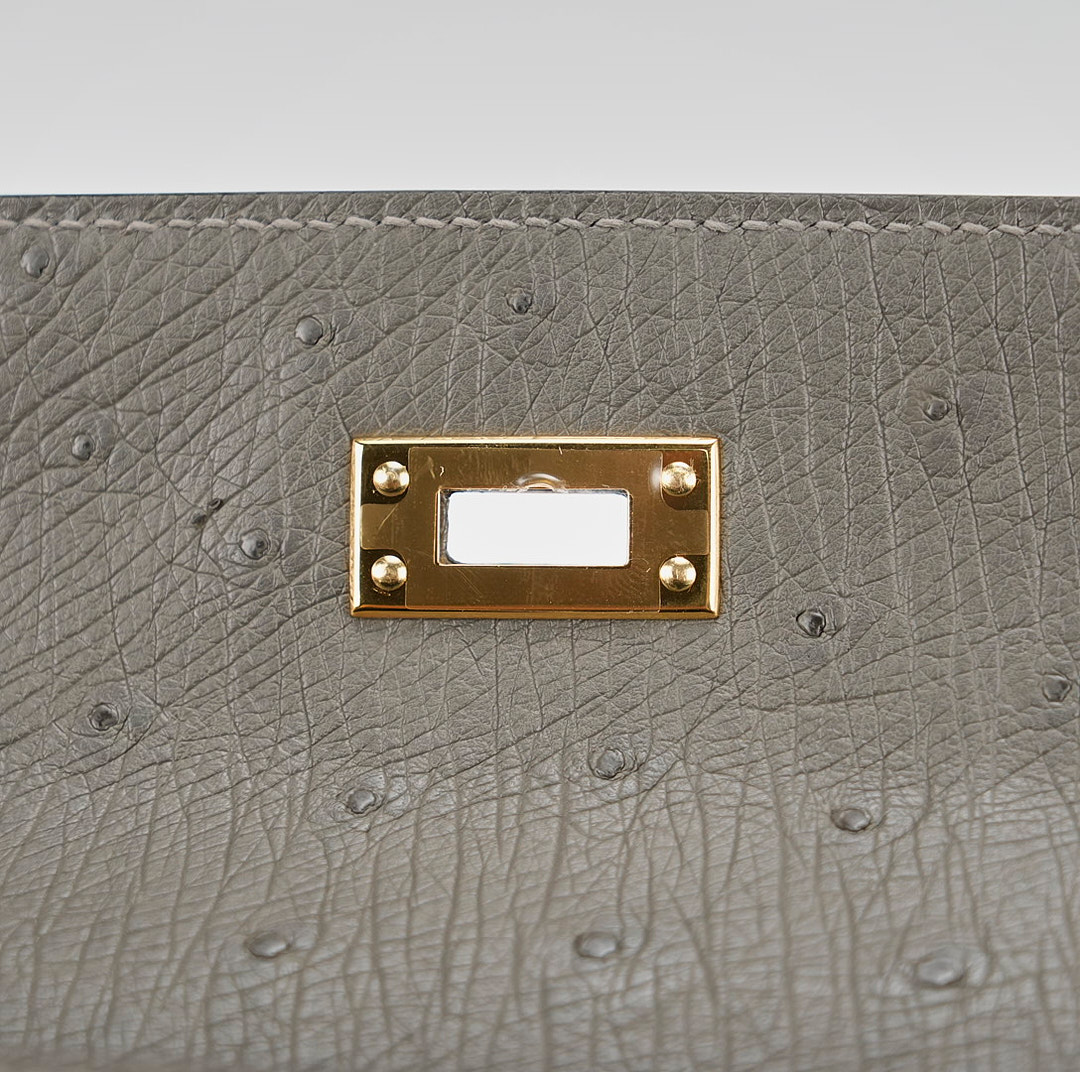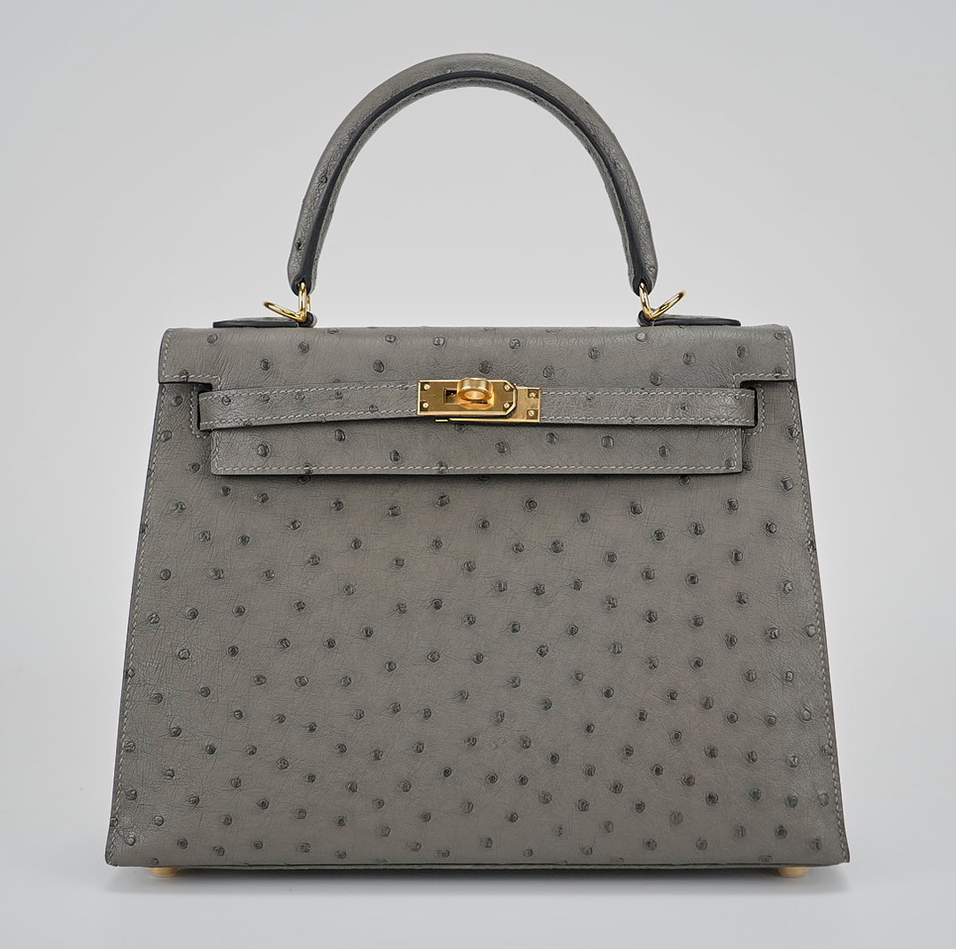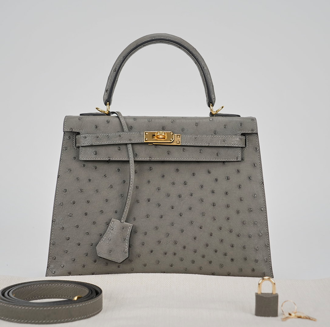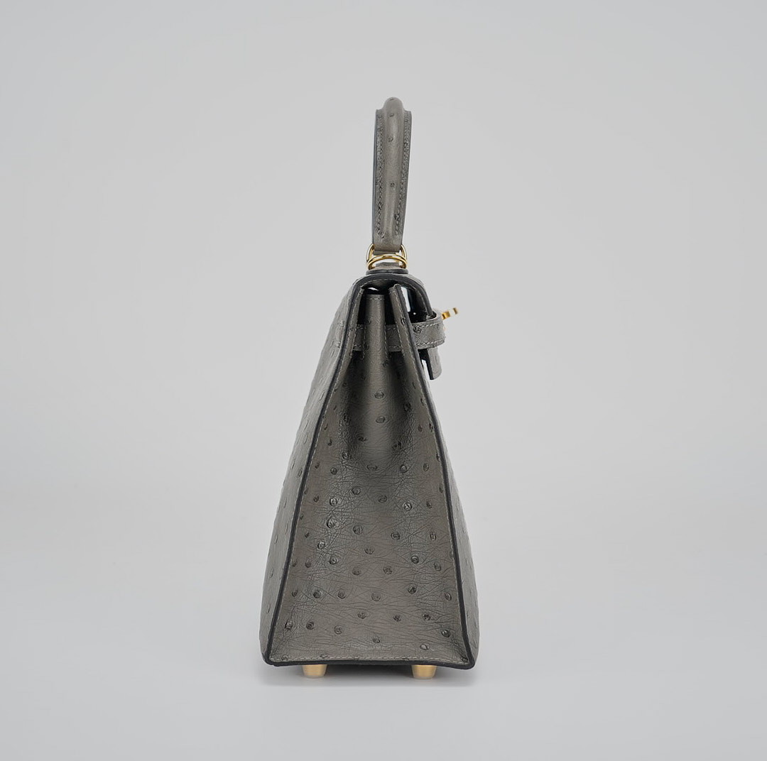 This unique KY 25 is the perfect addition to your collection. It has been handcrafted from Ostrich leather and is colored in the statement shade of Gris Agathe.