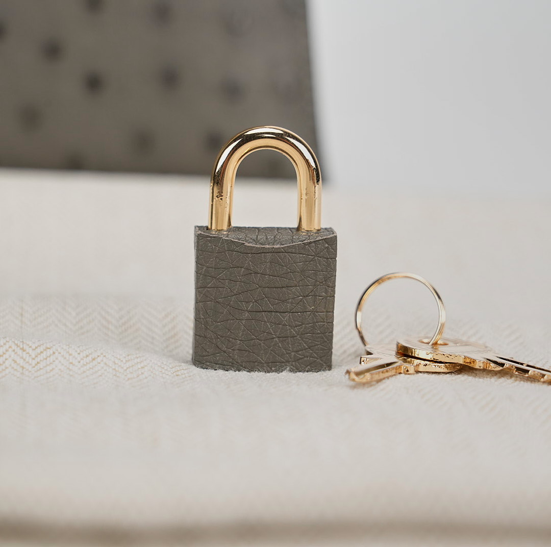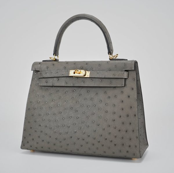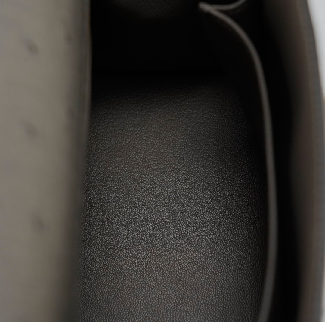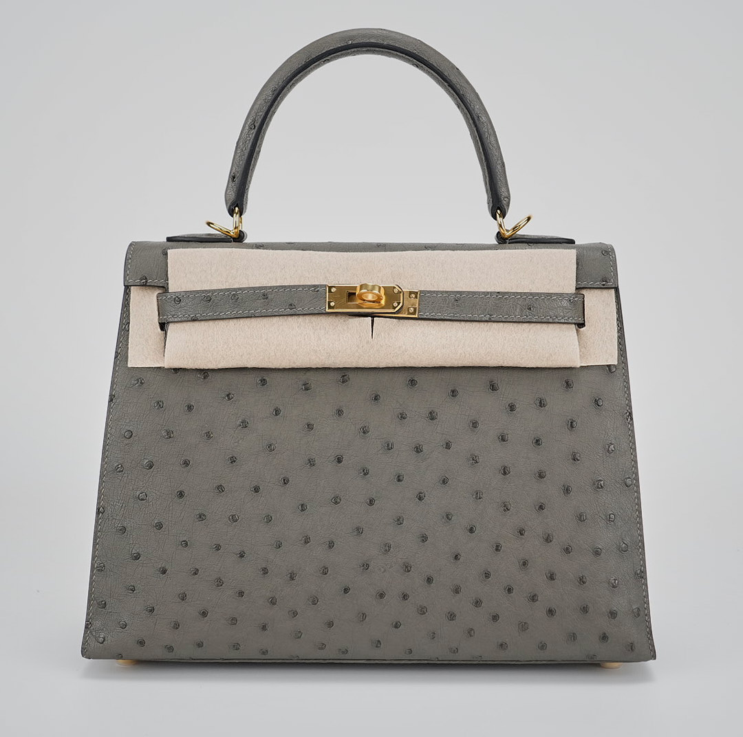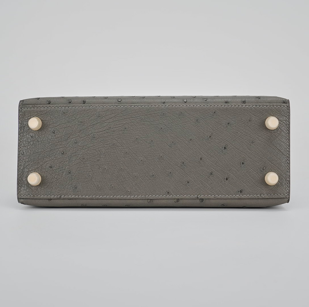 This unique KY 25 is the perfect addition to your collection. It has been handcrafted from Ostrich leather and is colored in the statement shade of Gris Agathe.