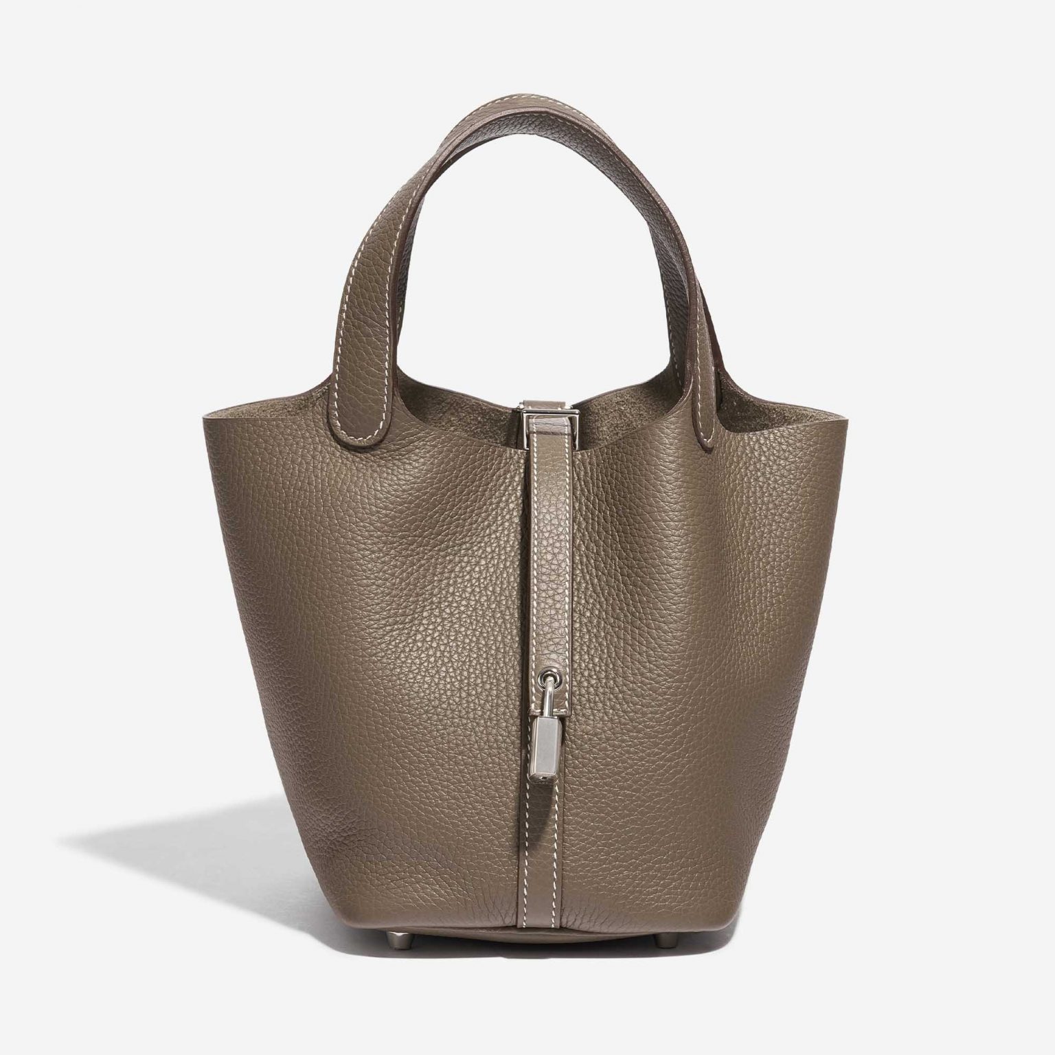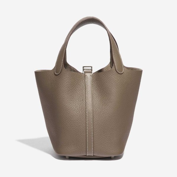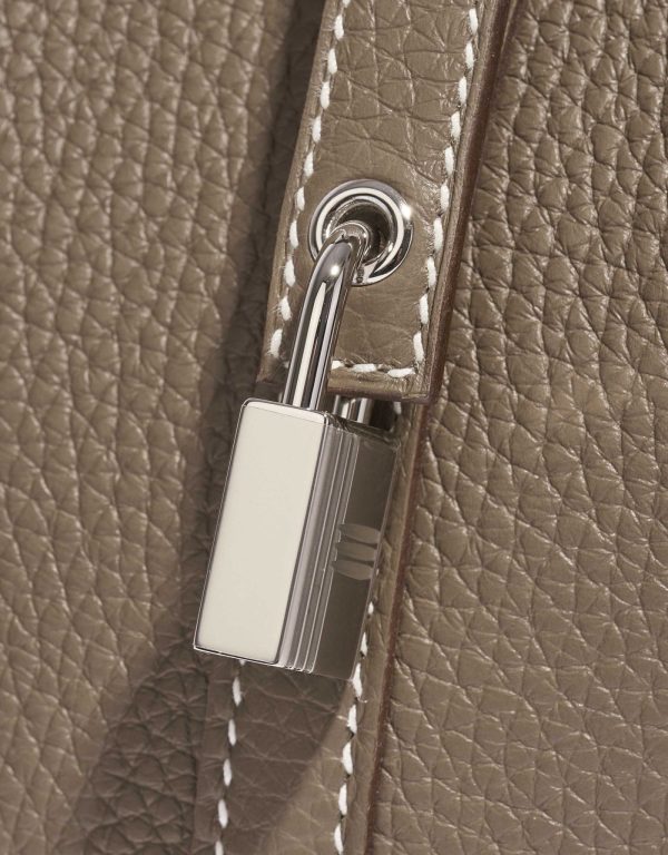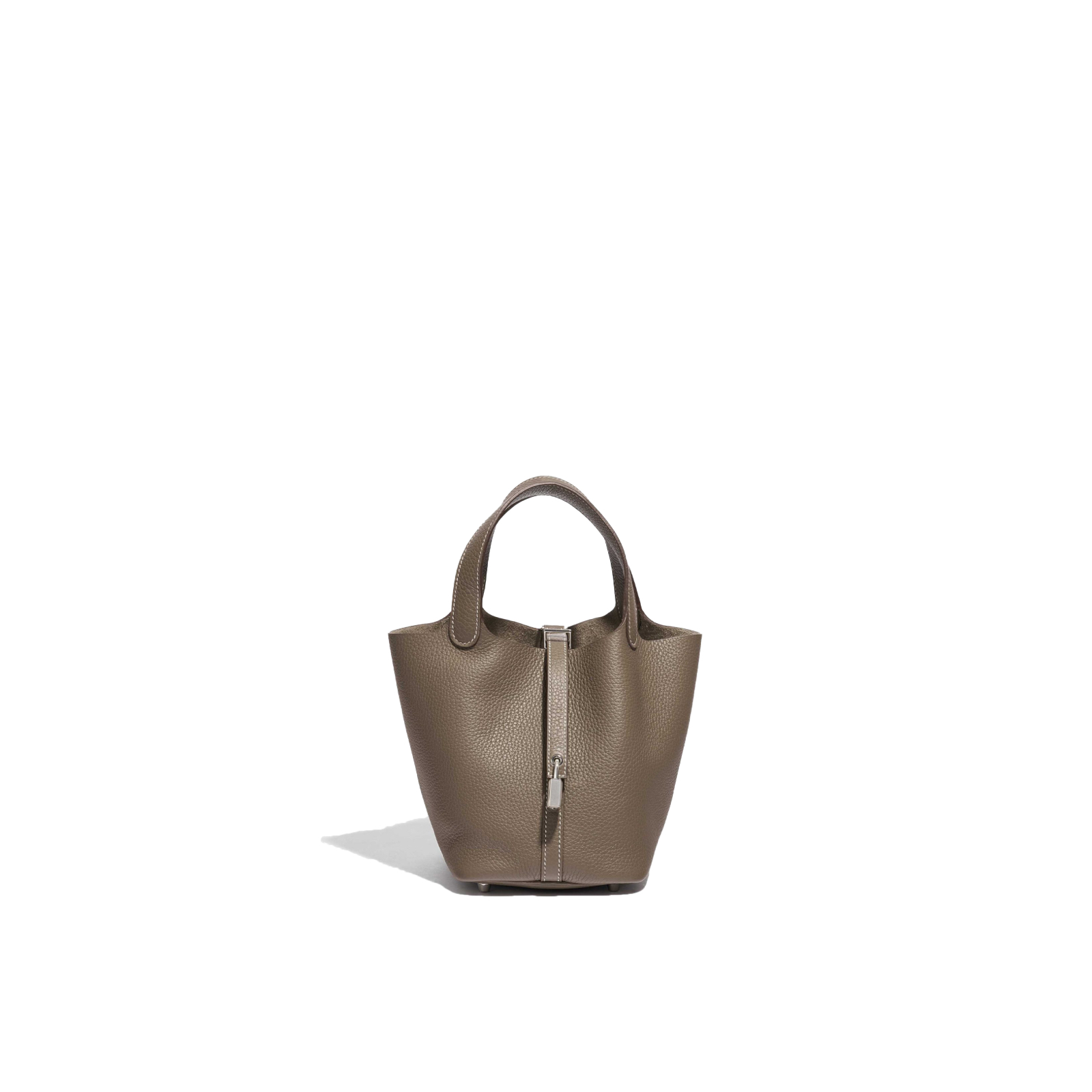 Picotin 18 was handcrafted from fine-grained Taurillon Clemence leather in Etoupe, a versatile grey-brown taupe, and accented with a palladium-plated padlock. Its unlined leather and simple, flexible handles make it the ultimate minimalist companion.