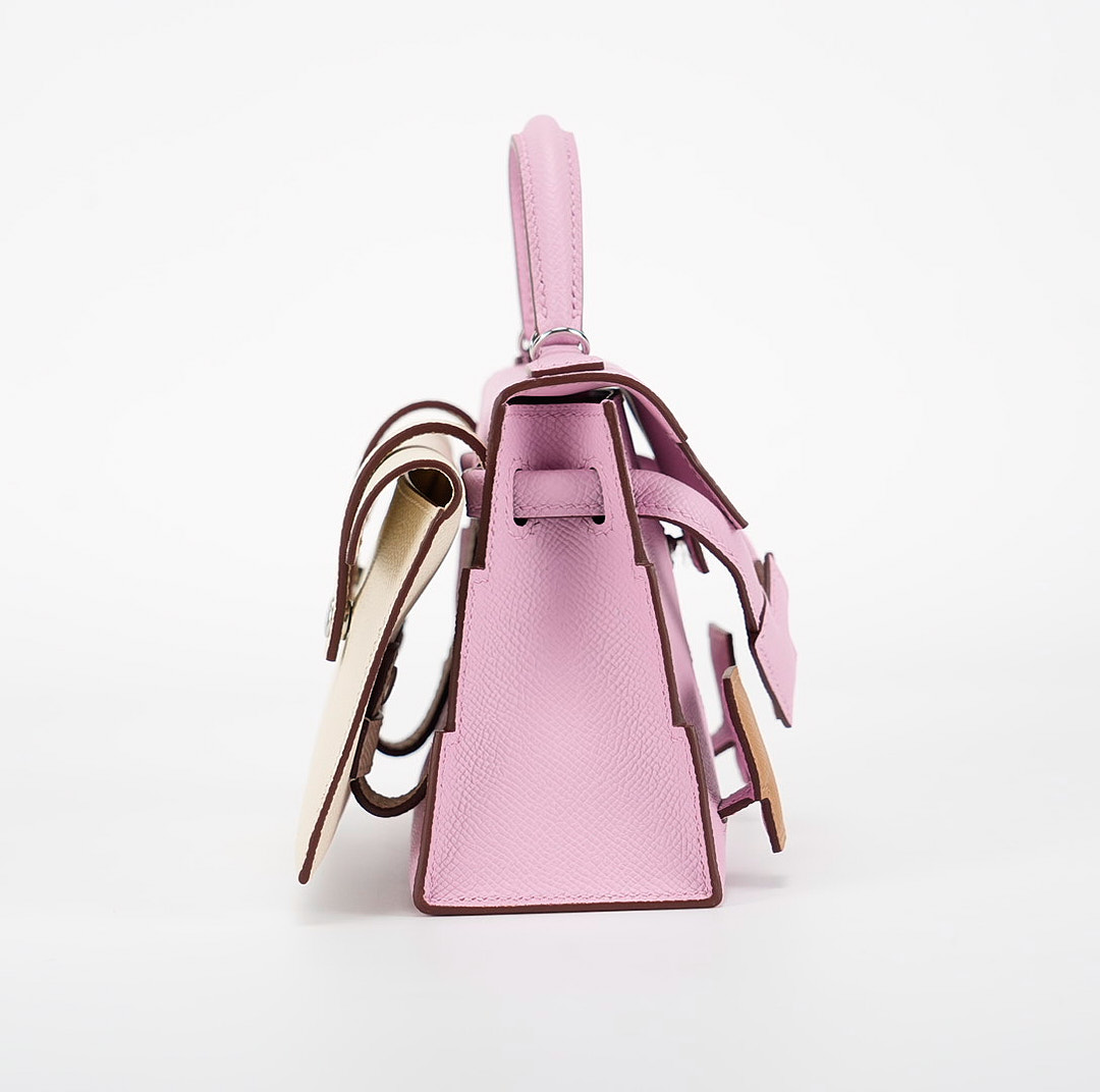 KY Doll or “Quelle Idole” is a splendid manifestation of creativity and craftsmanship. This creation flaunts a tricolor scheme with the gentle hue of Mauve Sylvestre, a zesty Lime, and the nuanced, coffee-like shade of Chai, all rendered in the esteemed Epsom leather.