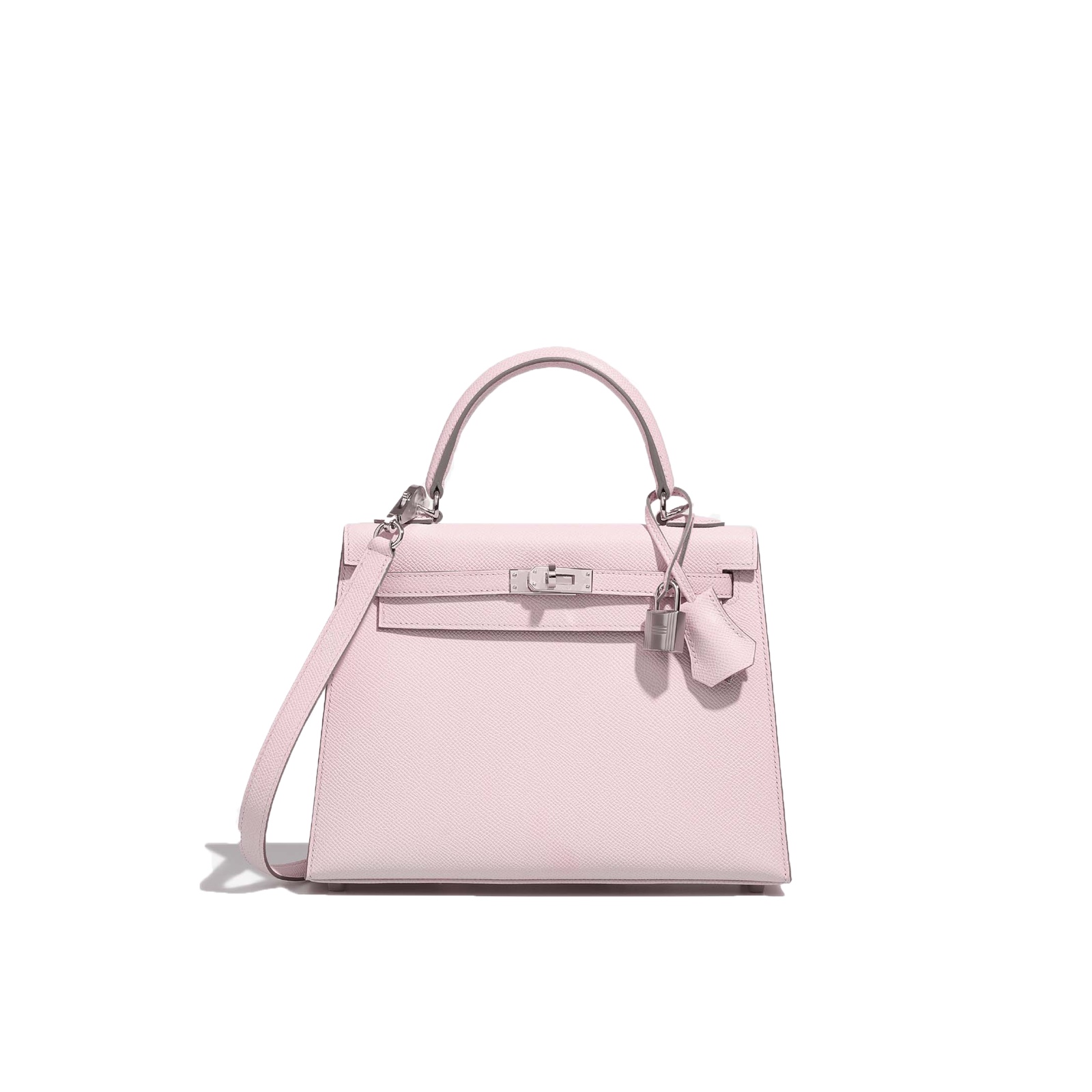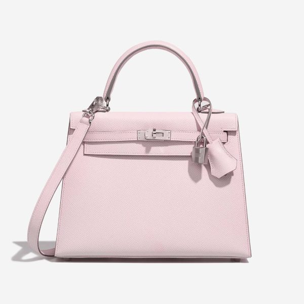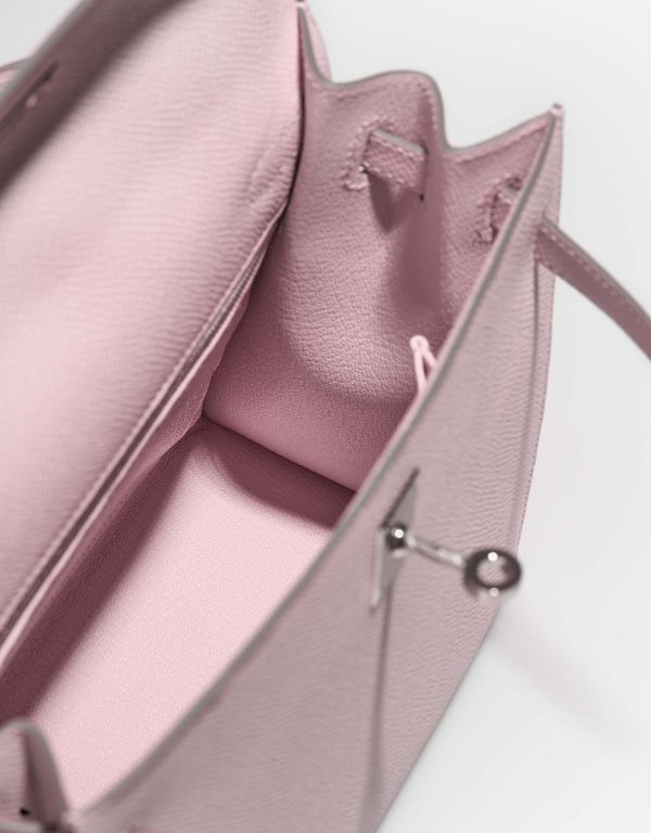 An KY 25 handcrafted from Epsom leather. This bag is colored in the adorable shade of Mauve Pâle. Topped with palladium hardware. Match the color of this design to your spring and summer looks.