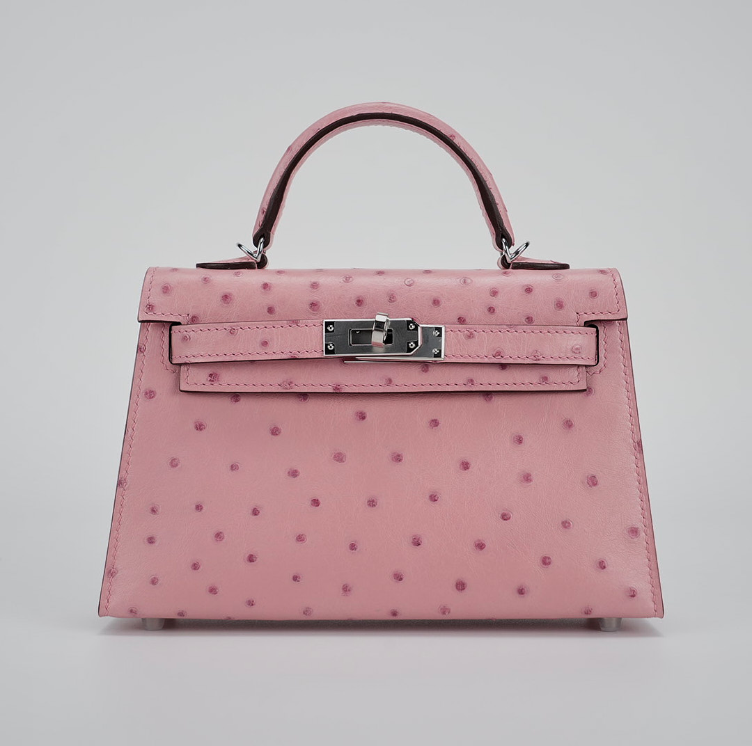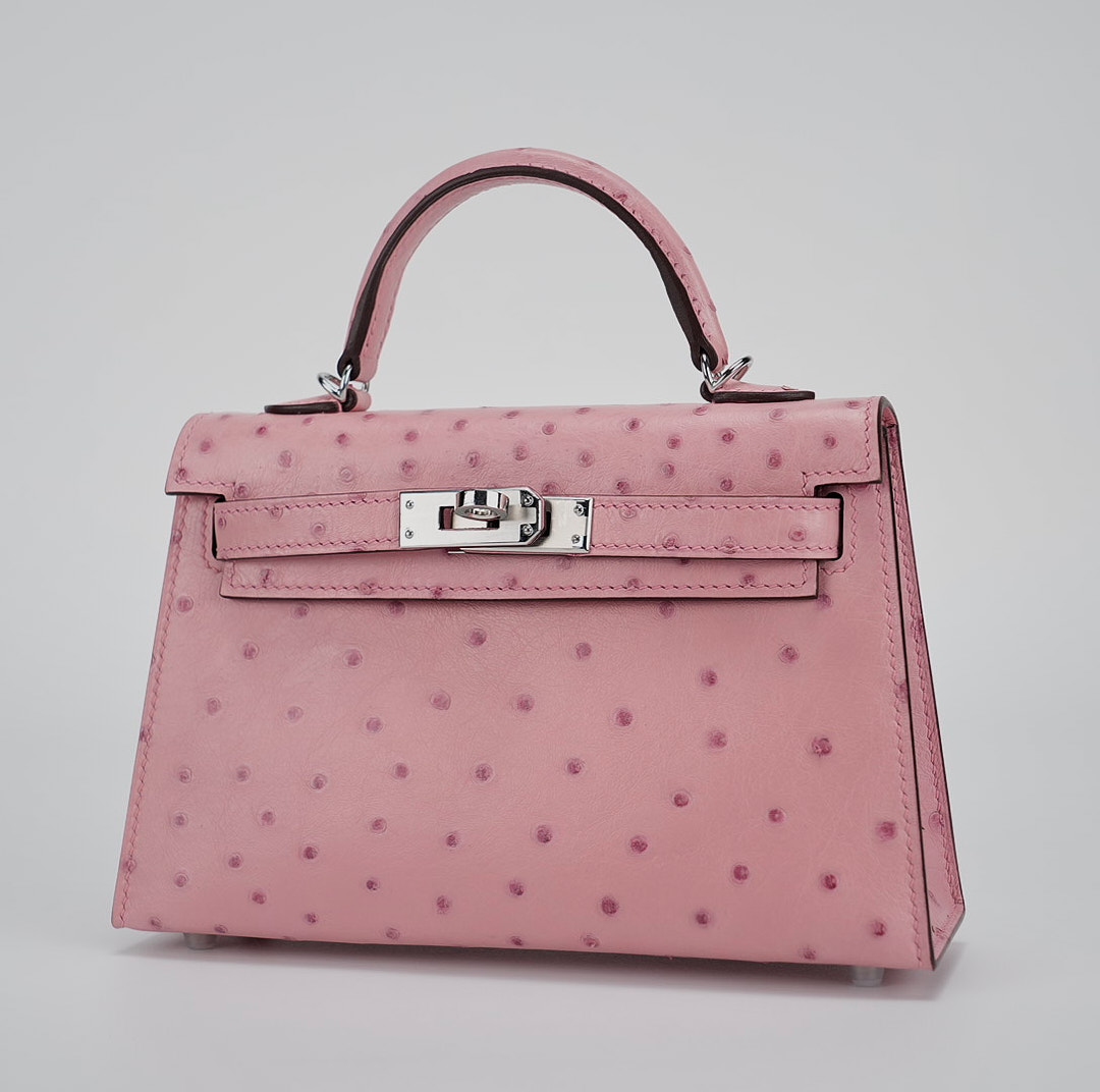 A mini KY handcrafted from ostrich leather in 5p Bubblegum. Loved by many for its impossibly cute dimensions, it’s a dainty partner to accompany you to dinner – sized to hold your phone, cardholder and lipstick only.