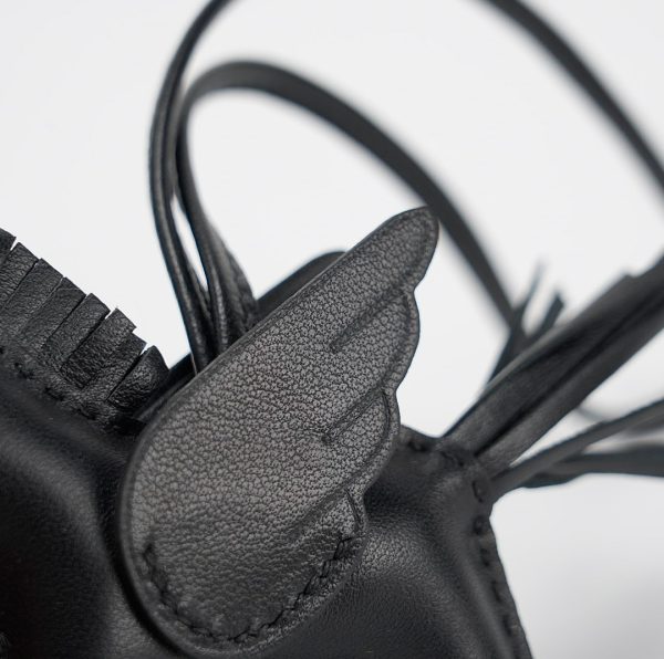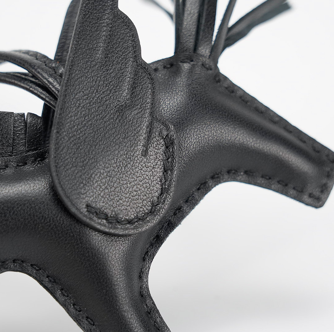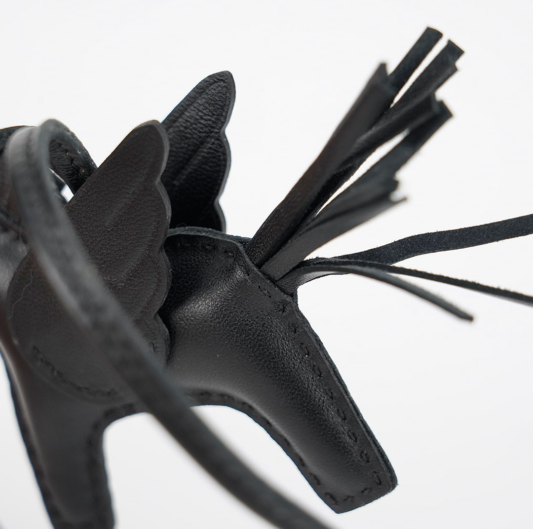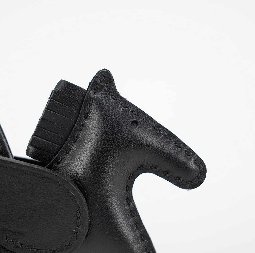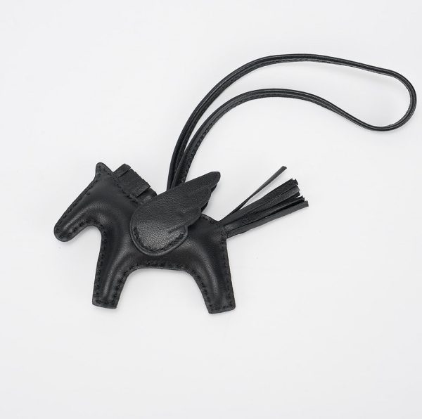 This is Rodeo Horse Bag Charm PM. This very charming bag charm is crafted of stuffed leather with fringe on a leather strap.