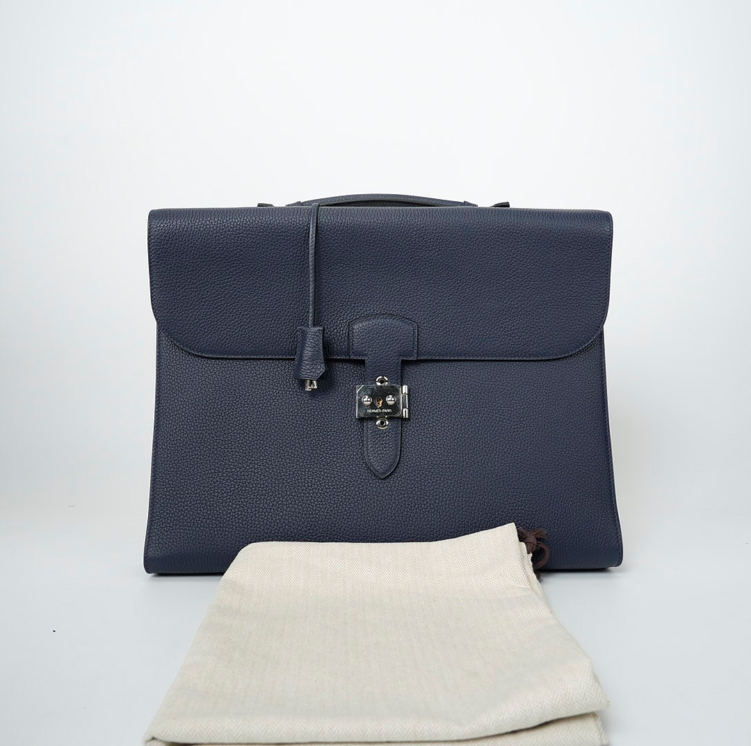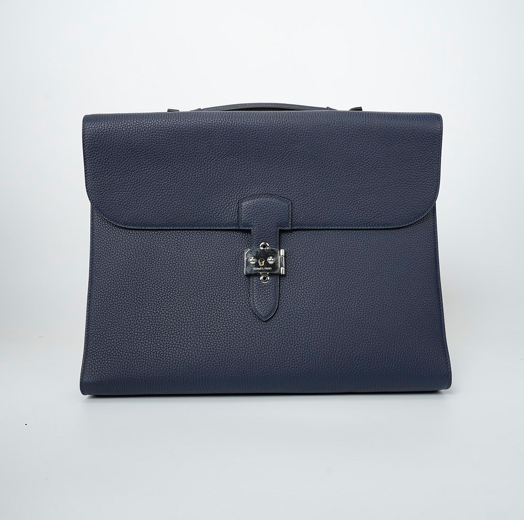 Make a strong impression with this Dépêches 38 bag. This in black Togo leather will add a quiet touch of elegance to your professional attire. Take advantage of its multiple compartments to organize your laptop, important documents, and daily essentials.