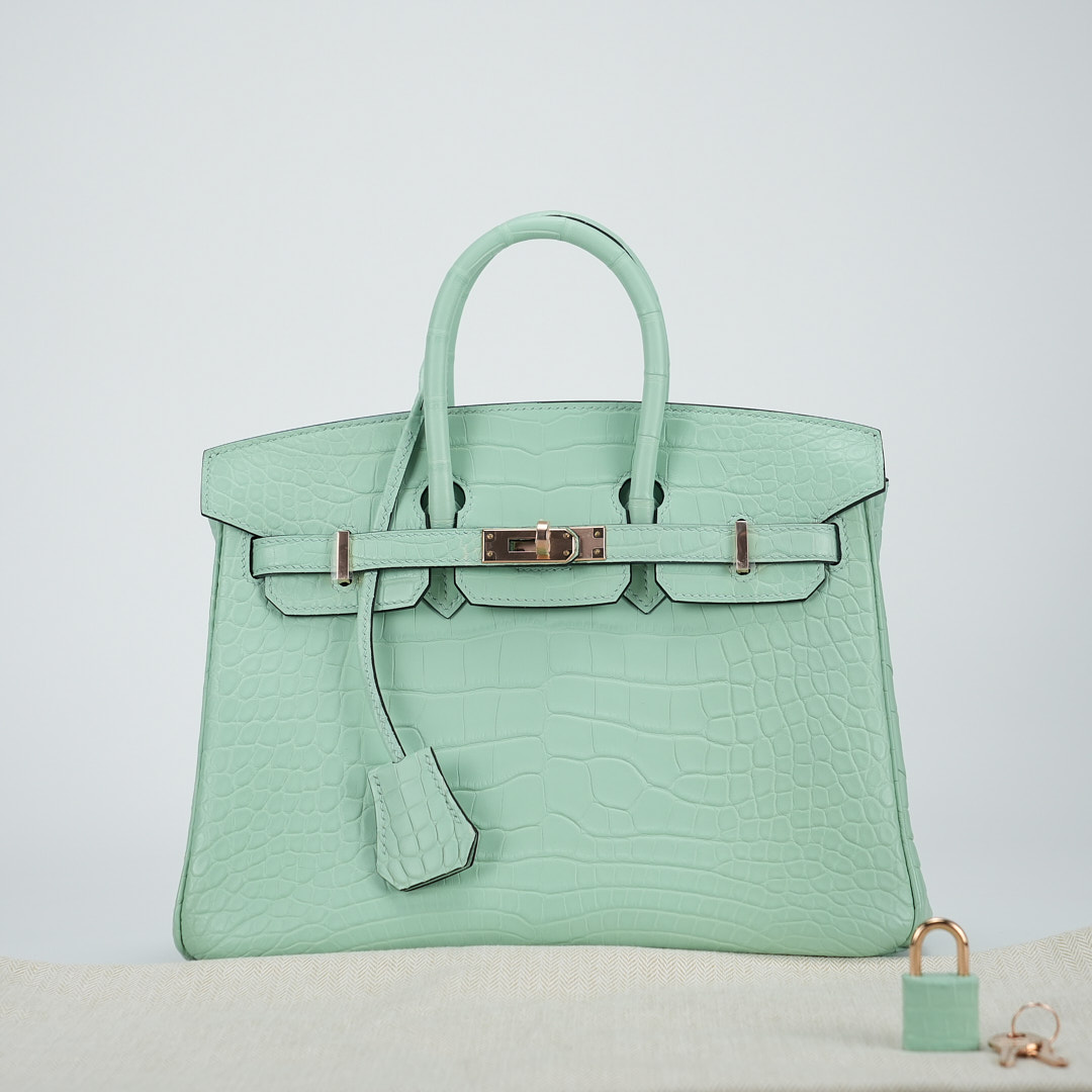 Vert d’Eau Matte Alligator Retourne BK 25 Rose Gold