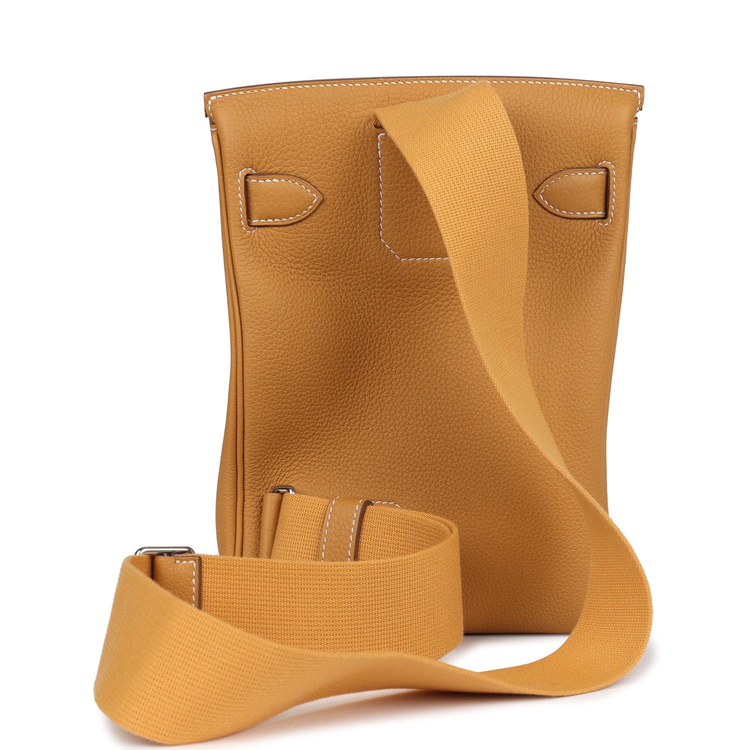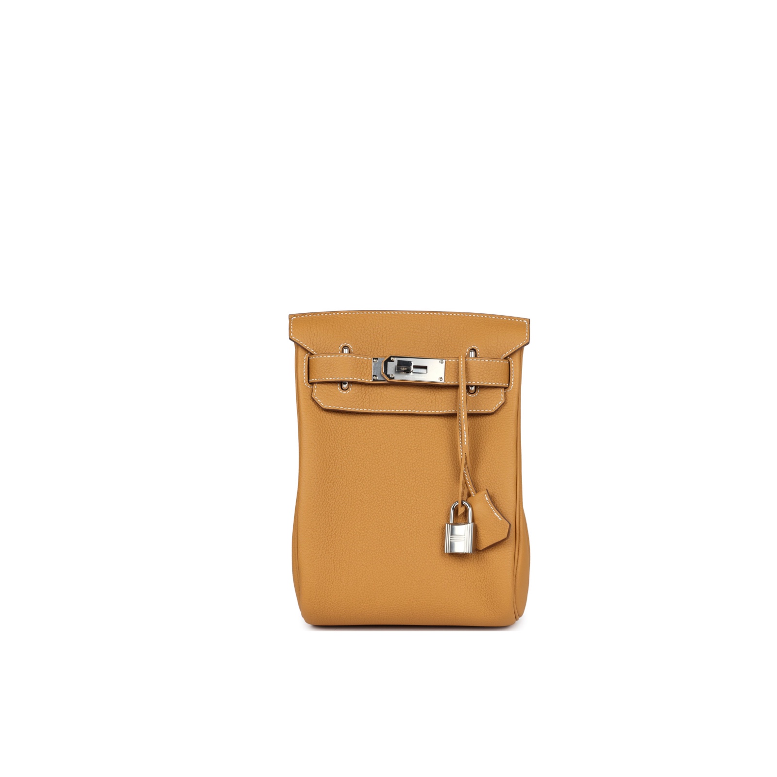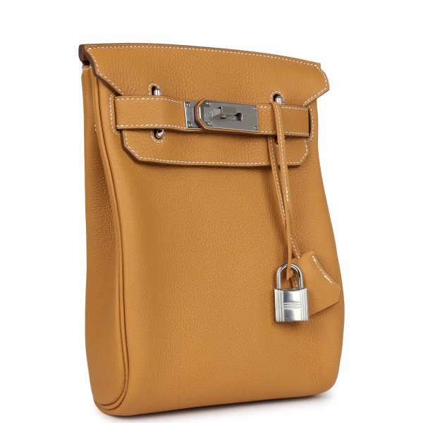 This is a Togo Hac A Dos Backpack. This stylish backpack is crafted of calfskin leather with a cross-over flap, polished palladium hardware including a strap anchors, and long adjustable canvas shoulder straps. The flap opens to a compact leather interior with a patch pocket.